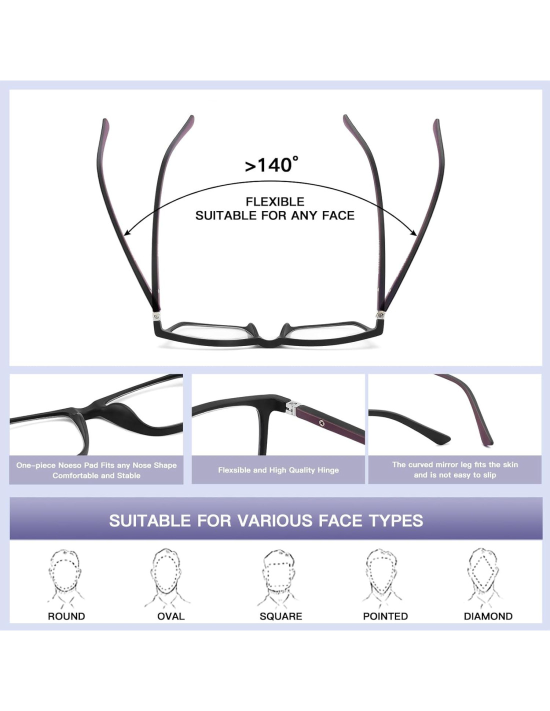 - Las gafas de lectura están disponibles en 3 colores y diferentes aumentos para satisfacer las necesidades individuales de diferentes usuarios, permitiéndote proteger tus ojos mientras muestras tu sentido de la moda.