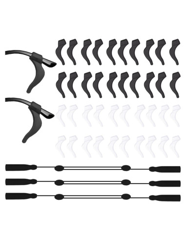 - PERFECTO PARA CUALQUIER ACTIVIDAD - ¡Recibirás 20 pares de Sujetadores para Gafas + 3 Correas Ajustables para Gafas! Un kit que se adapta a todos, haciendo que este accesorio para gafas sea perfecto tanto para hombres como para mujeres. Perfecto para cualquier deporte acuático o deportes al aire libre como correr, andar en bicicleta, esquiar, pescar, etc. o uso diario.