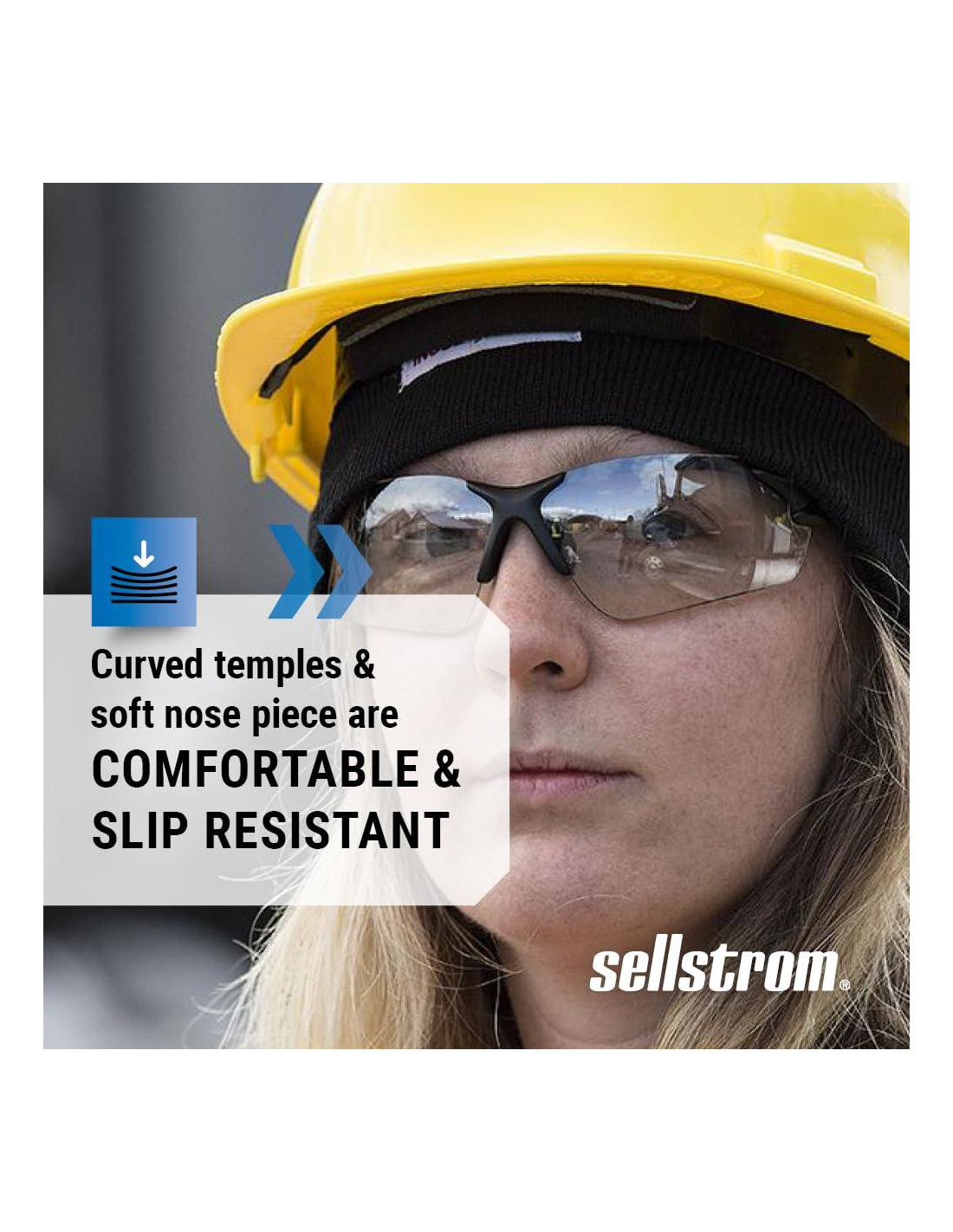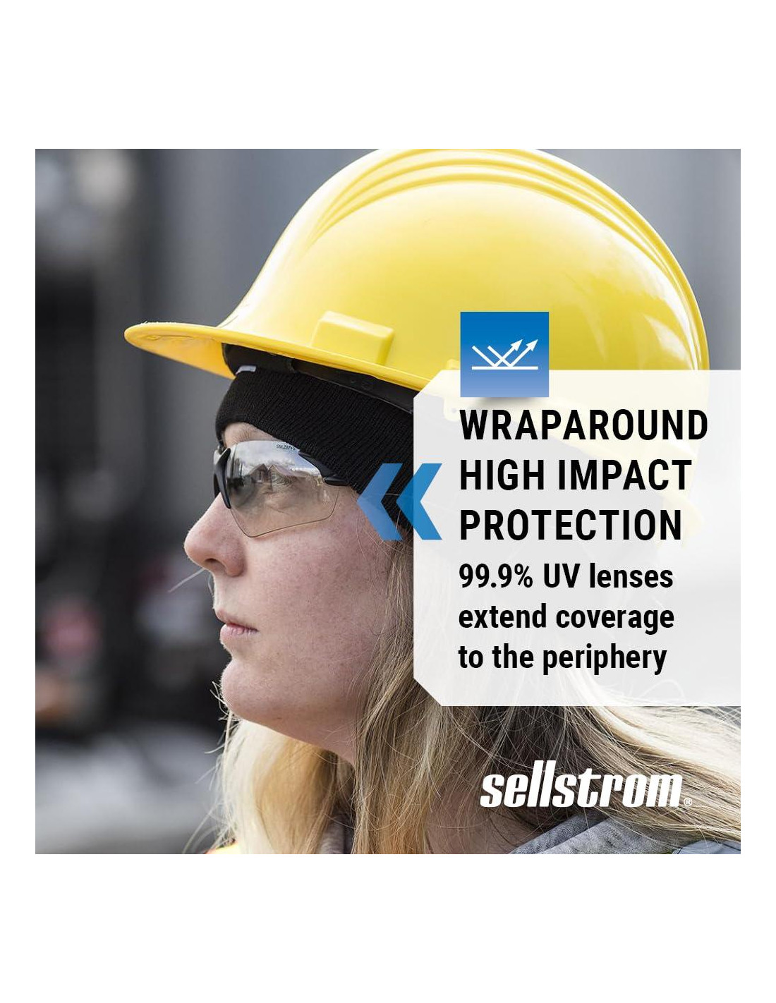 Patillas co-moldeadas modernas, elegantes y atrevidas ofrecen un estilo y comodidad excepcionales; lente interior/exterior. Lentes de dos piezas de estilo envolvente ópticamente correcto de alto impacto ofrecen una cobertura superior. Los lentes están montados en el marco con un espacio de ventilación, minimizando el empañamiento. Cumple con la norma ANSI Z87.1 + 2015. La pieza nasal suave ofrece comodidad durante todo el día y el lente proporciona un 99% de protección contra los dañinos rayos UV.