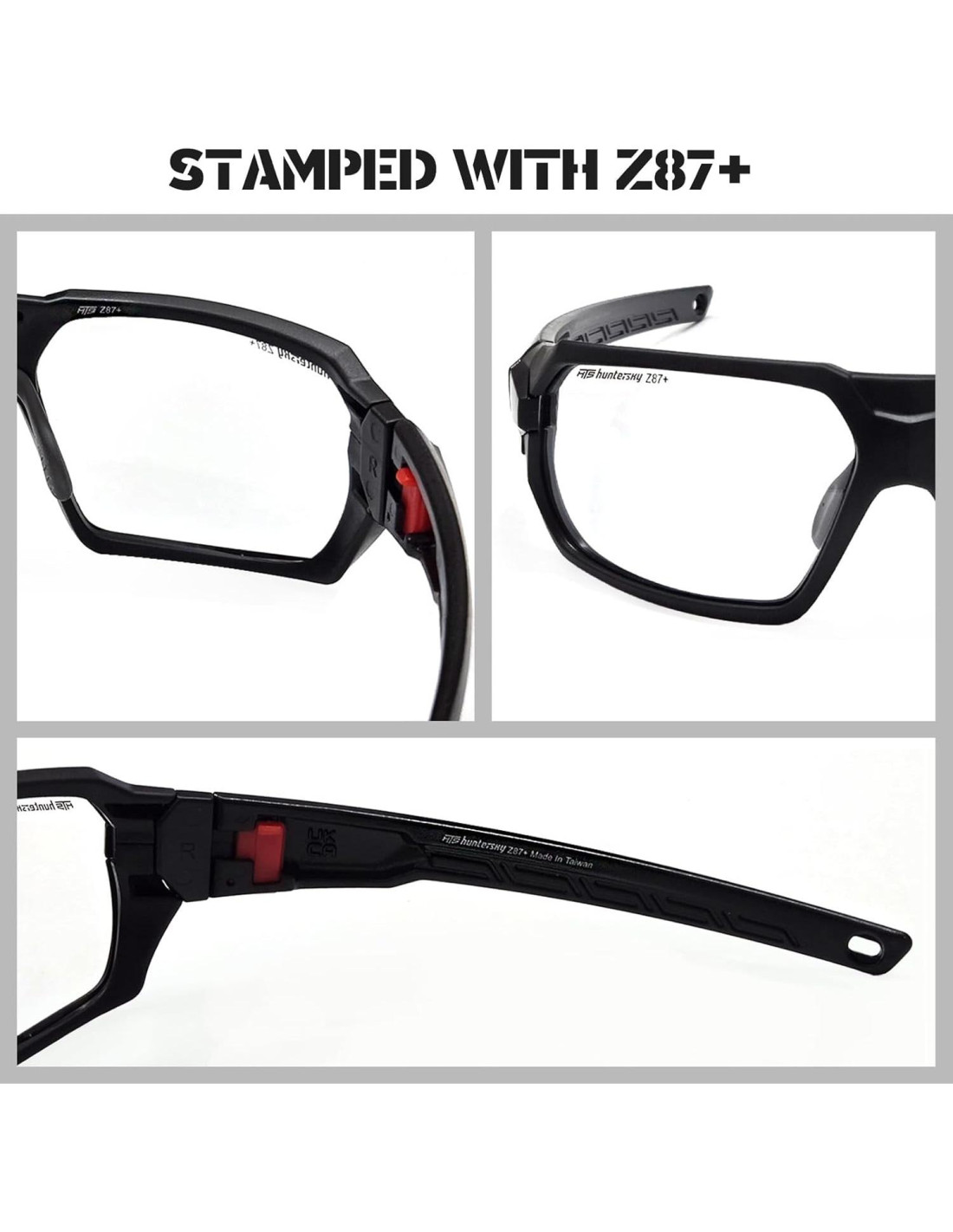 - Claridad Óptica y Máxima Protección Ocular Nuestras lentes ofrecen una claridad superior sin distorsión que causa fatiga ocular o dolor de cabeza. Bloquean la luz dañina de la luz solar hasta 400 nm, reducen el deslumbramiento incómodo y ayudan a proteger sus ojos de cataratas y degeneración macular relacionada con la edad (DMAE). La lente envolvente de gran tamaño proporciona una cobertura máxima que previene lesiones oculares por impactos de colisiones y bloquea objetos voladores, esquirlas, spray de pólvora no quemada y polvo en sus ojos.