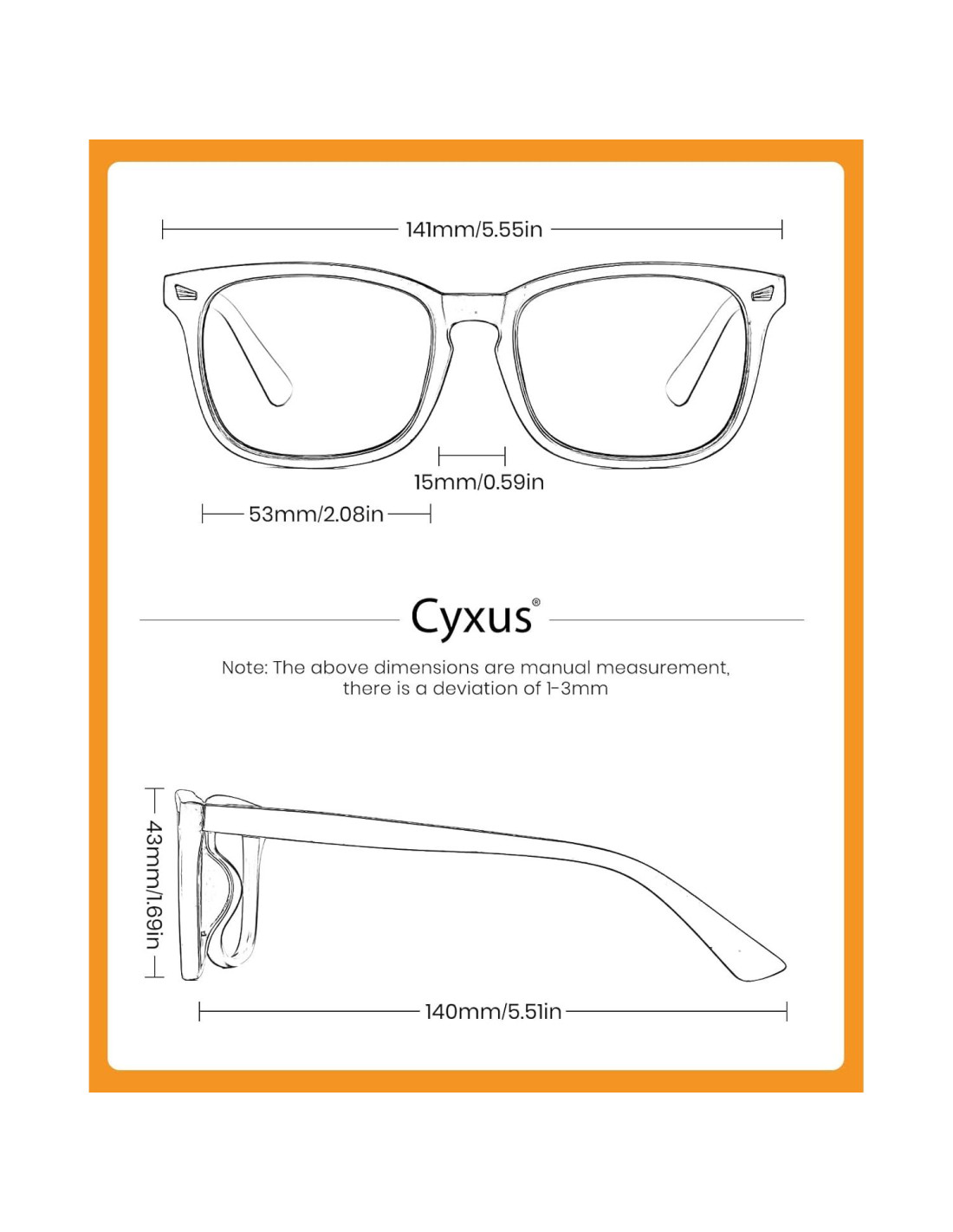 - MATERIAL DE LAS GAFAS: Las gafas bloqueadoras de luz azul Cyxus están hechas de marcos cuadrados de policarbonato liviano y lentes de PC. Nuestra lente de PC clara es un 30% más ligera que la lente de resina y un 50% más ligera que la lente de vidrio. Al mismo tiempo, las lentes de PC son más seguras que las lentes de vidrio. Su resistencia al impacto es 60 veces mayor que la de las lentes de vidrio y a través de la prueba de impacto de caída de bola, la lente no es fácil de romper