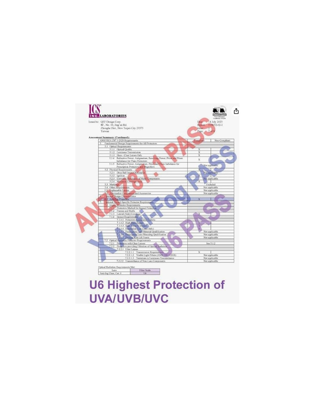 - Nuestras lentes claras cumplen con los lentes de filtro UV ANSI Z87.1 hasta la escala más alta U6. Bloquean los UV dañinos y reducen la fatiga y el estrés ocular, haciendo que tus ojos estén más cómodos.