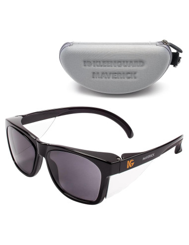 - Gafas de Seguridad KleenGuard V30 Maverick/Estuche; Lentes Ahumados con recubrimiento antiempañante KleenVision; Marco Negro; Gafas de Sol Unisex para Hombres y Mujeres