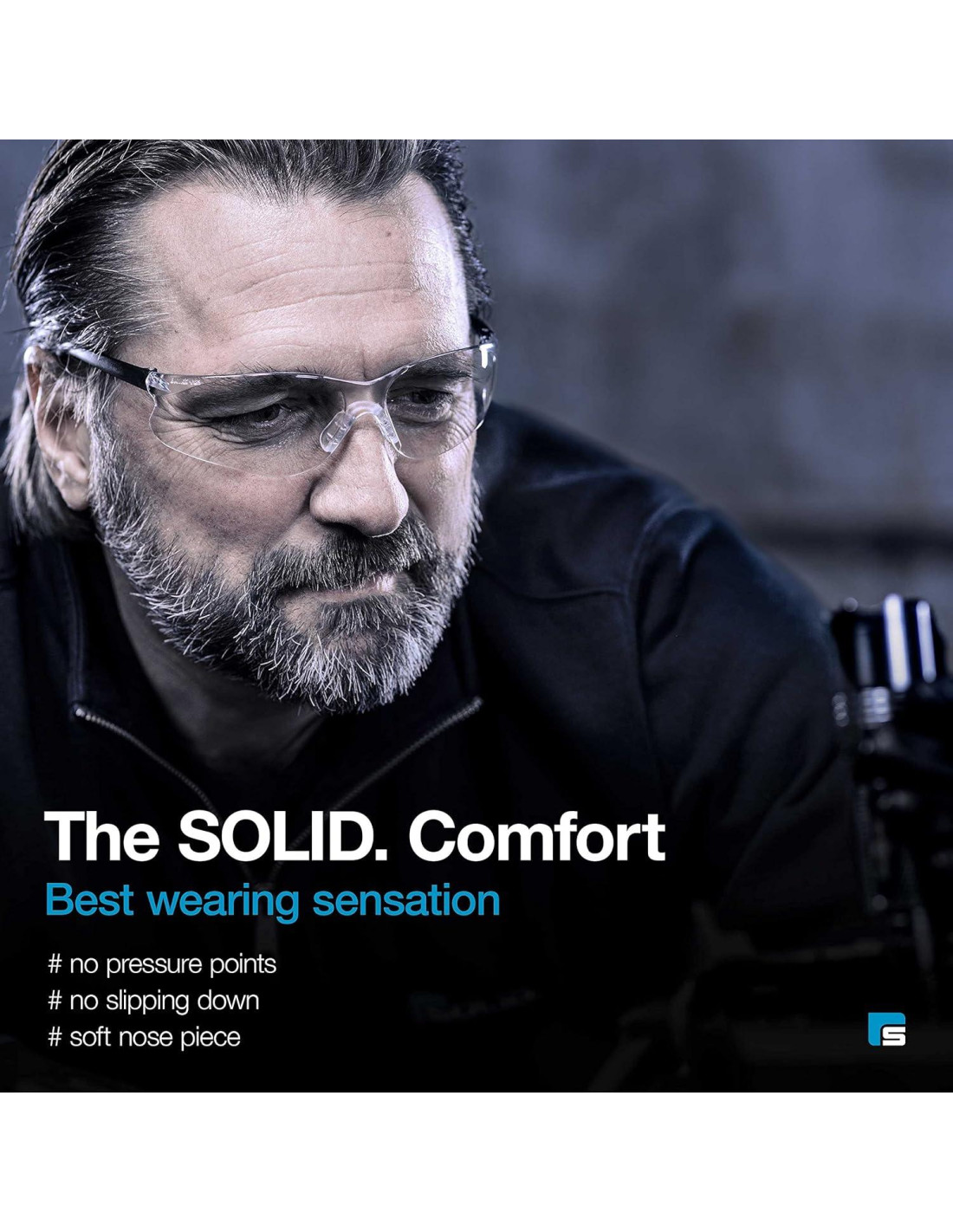 - LENTES RECUBIERTOS SOLID. RETINA - Debido al recubrimiento especial, nuestras gafas protectivas son altamente resistentes a los arañazos, no se empañan y protegen contra los dañinos rayos UV. Nuestras Gafas de Seguridad están certificadas según la norma US ANSI Z87+ y la norma alemana DIN EN 166 & EN 170.