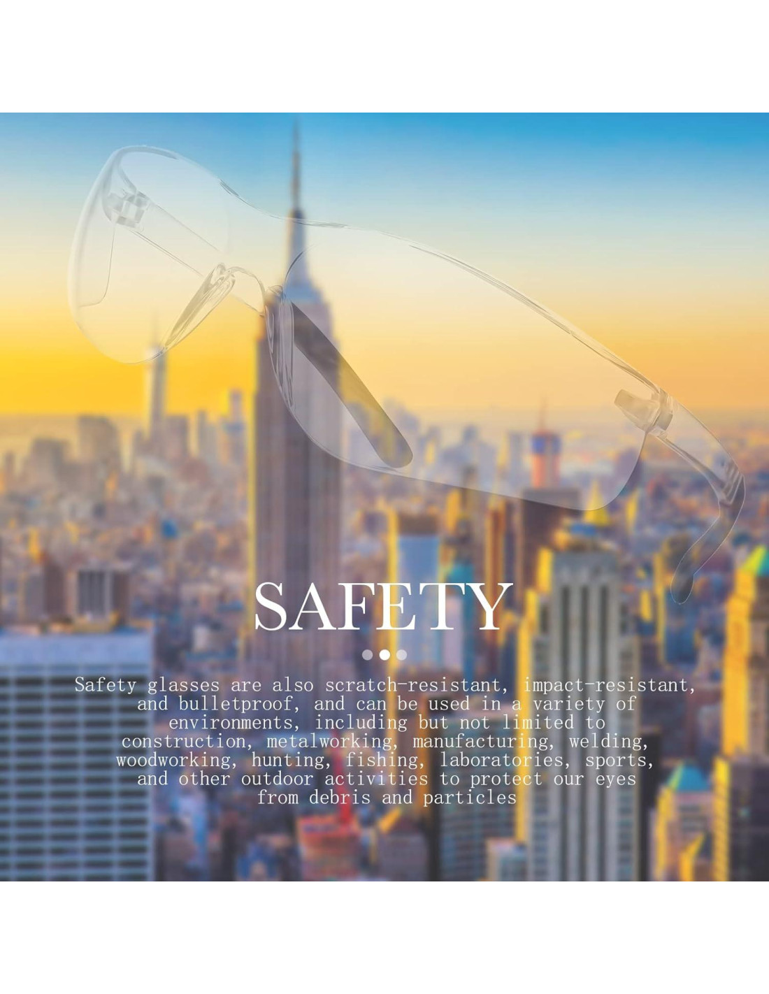 - Experiencia de uso suave: las gafas de seguridad protectoras son ligeras, lo que te permite usarlas durante largos períodos de tiempo mientras trabajas o juegas, y se pueden llevar fácilmente en un bolsillo cuando no las necesitas; El diseño elegante que se ajusta alrededor de la cara permite que se adapten fácilmente a tu rostro mientras también ofrecen un aspecto elegante con visión clara y protección