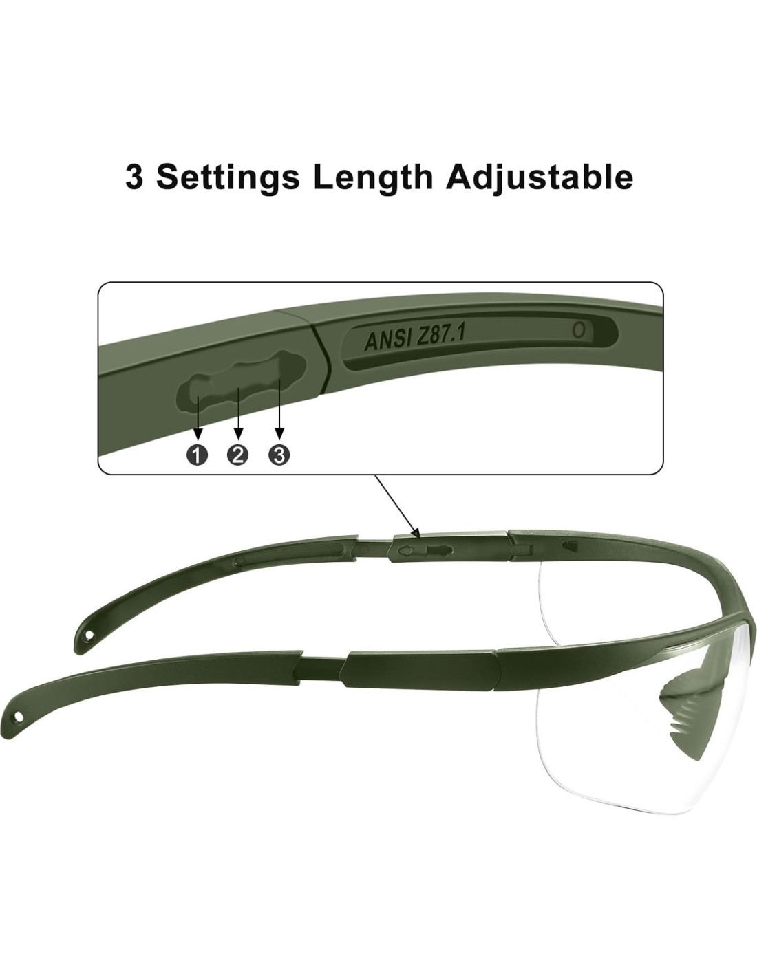 - Longitud Ajustable y Almohadilla Nasal Suave: Estas gafas de tiro están disponibles en 3 longitudes para adaptarse a la forma de tu cabeza. La almohadilla nasal de goma suave antideslizante mejora el ajuste, no se desliza y se puede usar durante mucho tiempo