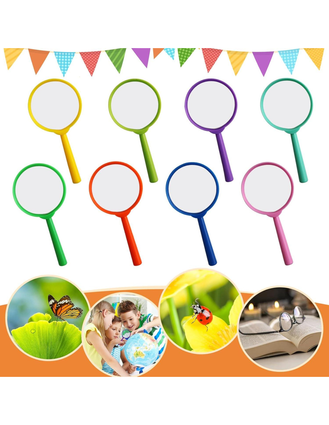 - Paquete Incluyendo: Recibirás 24Pcs lentes de aumento coloridos para niños; 8 piezas de cada color incluyen amarillo, rosa, naranja, púrpura, verde oscuro, verde claro, verde pasto y azul.