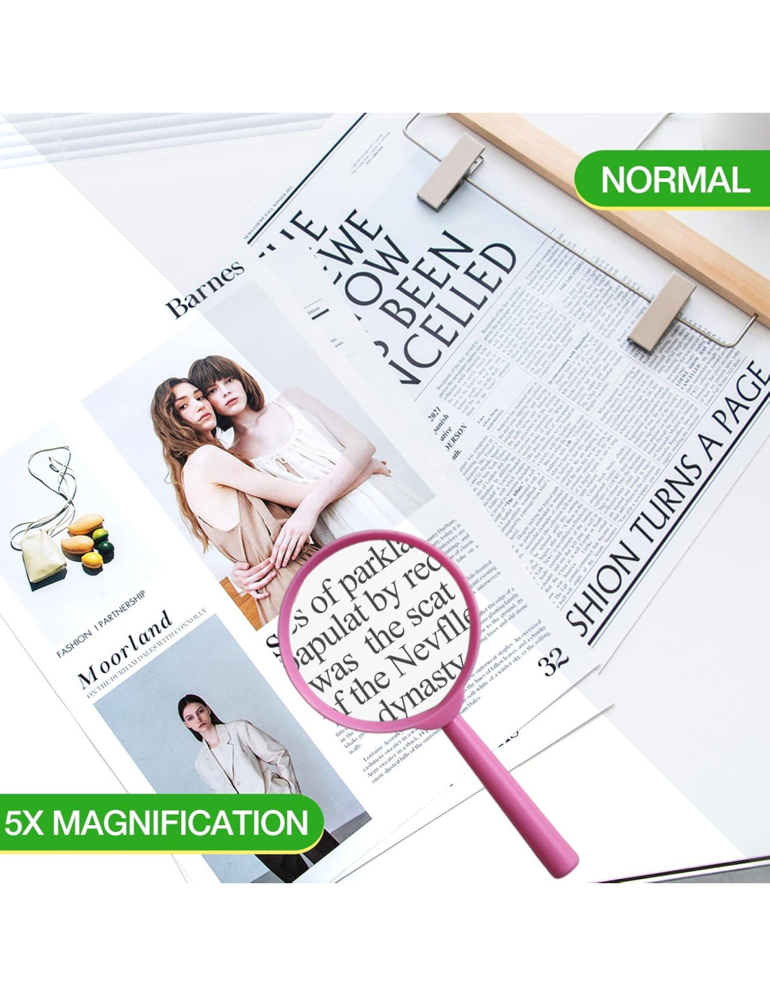- Material Premium: La lente de aumento para niños está hecha de material acrílico, clara y no fácil de deformar; la lente de mano 5X es adecuada para el uso de niños y no lastima los ojos.