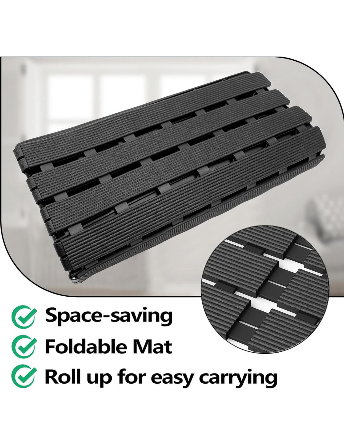 Asegúrese de que la superficie esté lisa, sin manchas y libre de jabón, escombros o suciedad. Coloque la alfombra plana, presione los bordes firmemente para evitar movimiento o enrollamiento. Aplique presión a todas las ventosas de manera uniforme, asegurándose de que cada una selle firmemente al suelo. Tire suavemente de la alfombra para confirmar que está anclada de forma segura sin deslizamientos. Listo para usar.