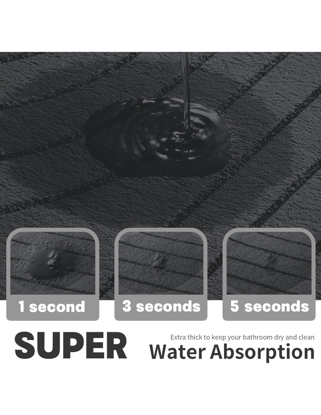 - Alfombrilla de Baño Absorbente Agujeros densos en el conjunto de alfombrillas de baño de espuma de memoria negra empujan el flujo de aire a través de la superficie para una rápida absorción de agua; Mantiene los suelos secos cuando sales de la bañera, la ducha o en el lavabo y evita que las gotas ensucien tu baño.