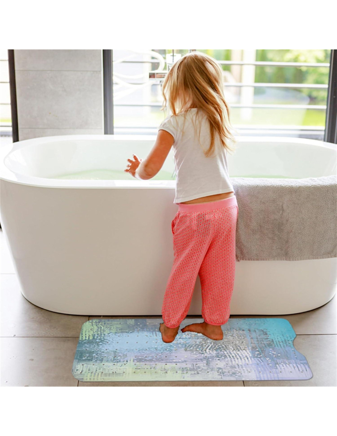 - [Alfombrillas de Bañera Lavables] La alfombra de baño de arte abstracto para la bañera con impresión única, creativa y única en color teal con patrón geométrico le hará disfrutar de su tiempo de ducha. Las alfombrillas de baño antideslizantes están hechas de PVC sin olor, son cómodas y suaves contra la piel, no se desvanecen, son estables y antideslizantes, enjuagar con agua o lavar en la lavadora después de cada uso y pegarla a la pared o colgarla en el borde de la bañera para secar para su próximo uso.