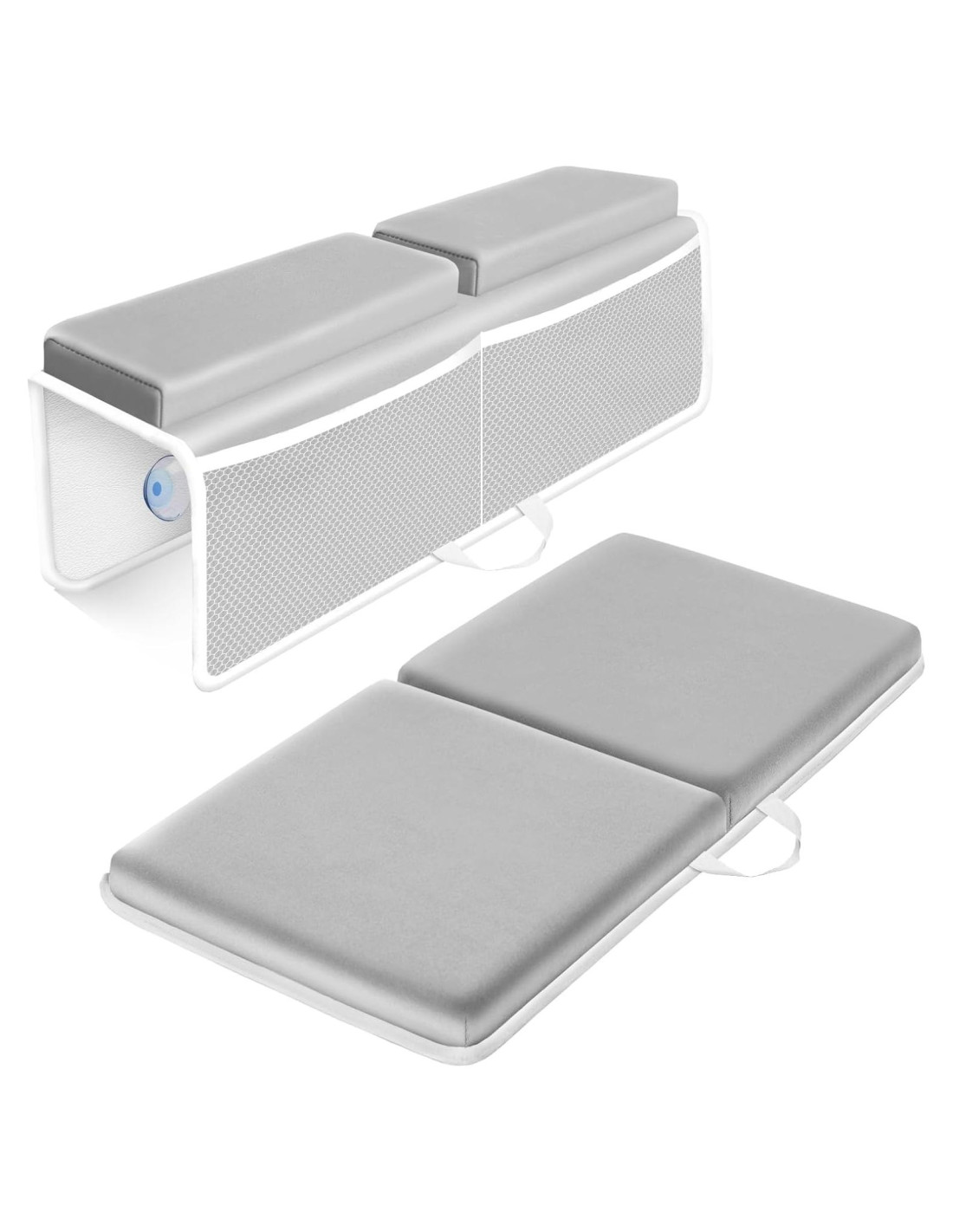 - ASIENTO DE BAÑO PARA BEBÉS - Instalación sin complicaciones: No es necesario perforar agujeros en la pared de tu baño para usar este conjunto de almohadilla para rodillas y cojín para brazos. El reposabrazos de la bañera está equipado con ventosas que lo mantienen en su lugar.