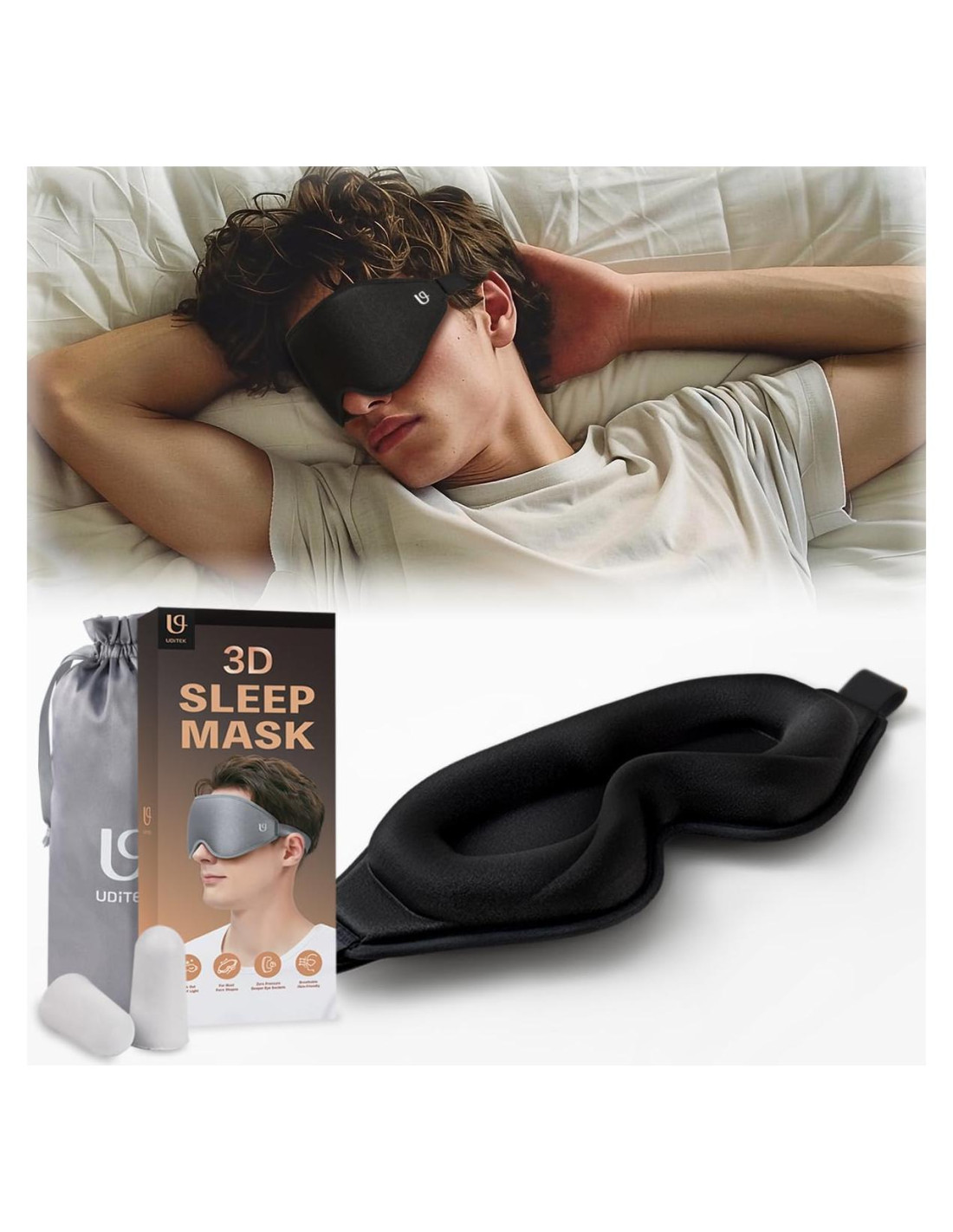 Persigue una mejor calidad de vida. 1 de cada 3 adultos estadounidenses sufre de problemas de sueño. La máscara para dormir 3D de Uditek puede ayudar a conciliar el sueño más rápido y mejorar la calidad del sueño al proporcionar un entorno totalmente oscuro. El artículo más importante en nuestro bolso de maquillaje es un buen sueño. Y también añade un poco de 'Sr. Sol' a la vida de un hombre. Máscara ocular 3D para dormir que bloquea la luz con tapones para los oídos y bolsa de almacenamiento para viajar. ¿Qué incluye esta compra? Obtendrás una máscara para dormir, una bolsa larga y un par de tapones para los oídos. ¿Cuál es el material? La máscara ocular está hecha de un tejido súper suave, sedoso y espuma viscoelástica. ¿Esta máscara ejerce presión sobre mis ojos o mi cara? El diseño de bolsillo profundo ofrece suficiente espacio para parpadear y es para párpados sensibles. ¿Seguirá bloqueando bien la luz si pido rosa o gris? Claro, bloquea la luz ya que se ajusta perfectamente a tu cara.