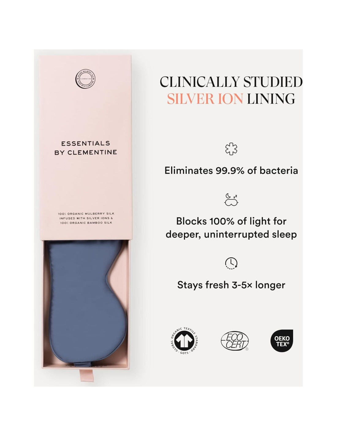 - Superficie de sueño limpia para piel sensible y propensa al acné: Los iones de plata han sido clínicamente probados para ayudar a reducir el acné, lo que hace que esta máscara sea ideal para aquellos con brotes, eczema o inflamación alrededor de los ojos.