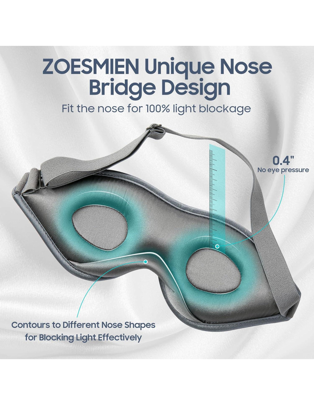 - Diseño Único de Puente Nasal: Se adapta a diferentes formas de nariz para un bloqueo de luz del 100%, creando un ambiente de sueño sereno para una relajación óptima. Diseño exclusivo de ZOESMIEN.