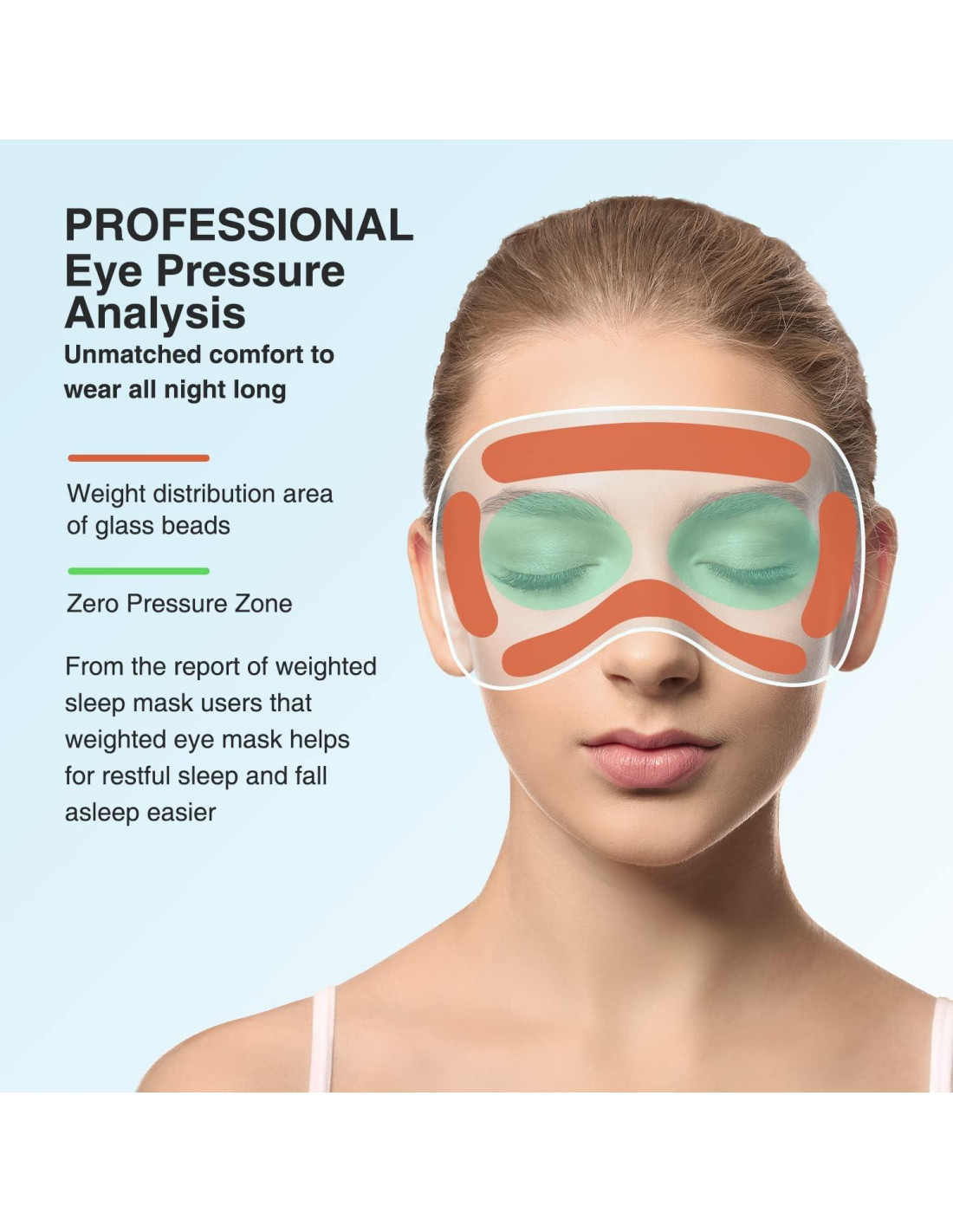 - [ Peso Perfecto para Dormir Más Rápido y Profundo ] Ligeramente pesada (con 4.2 oz de cuentas, la cantidad justa para los ojos) proporciona la presión suficiente para relajar tus nervios o la fatiga de tus ojos, llevándote a la máxima relajación y mejor sueño