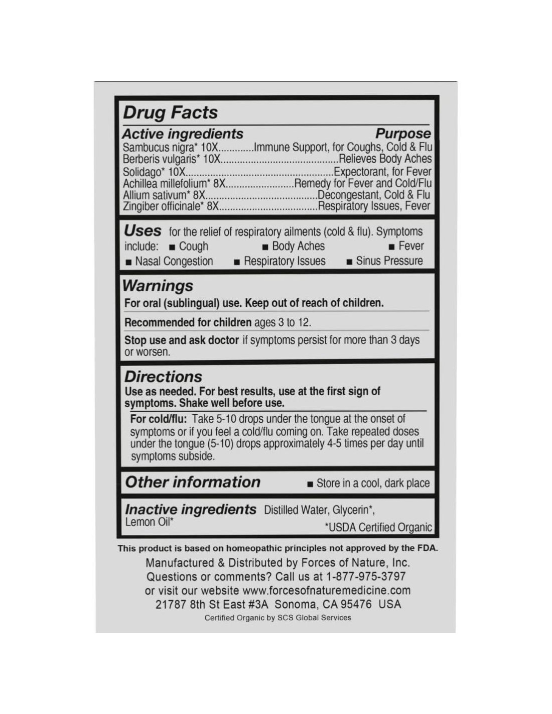 Alivia rápidamente los signos de resfriado y tos de tu hijo con la Medicina para Tos y Resfriado de Forces of Nature para Niños. Esta fórmula no sedante se dirige a la nariz moqueante o congestionada, tos, congestión, moco, fiebre y garganta irritada, sin químicos dañinos. Hecho con ingredientes homeopáticos suaves pero efectivos como Saúco, Agracejo, Vara de Oro y Albahaca Sagrada, trabaja con el sistema inmunológico de tu hijo para combatir los signos de resfriado y tos y aumentar naturalmente la inmunidad. Simple de usar, solo coloca de 5 a 10 gotas debajo de la lengua para una rápida absorción y alivio rápido. Seguro, No OGM, certificado Leaping Bunny y hecho en EE. UU., nuestro Alivio de Resfriado y Tos para Niños está diseñado para niños de 3 años en adelante.