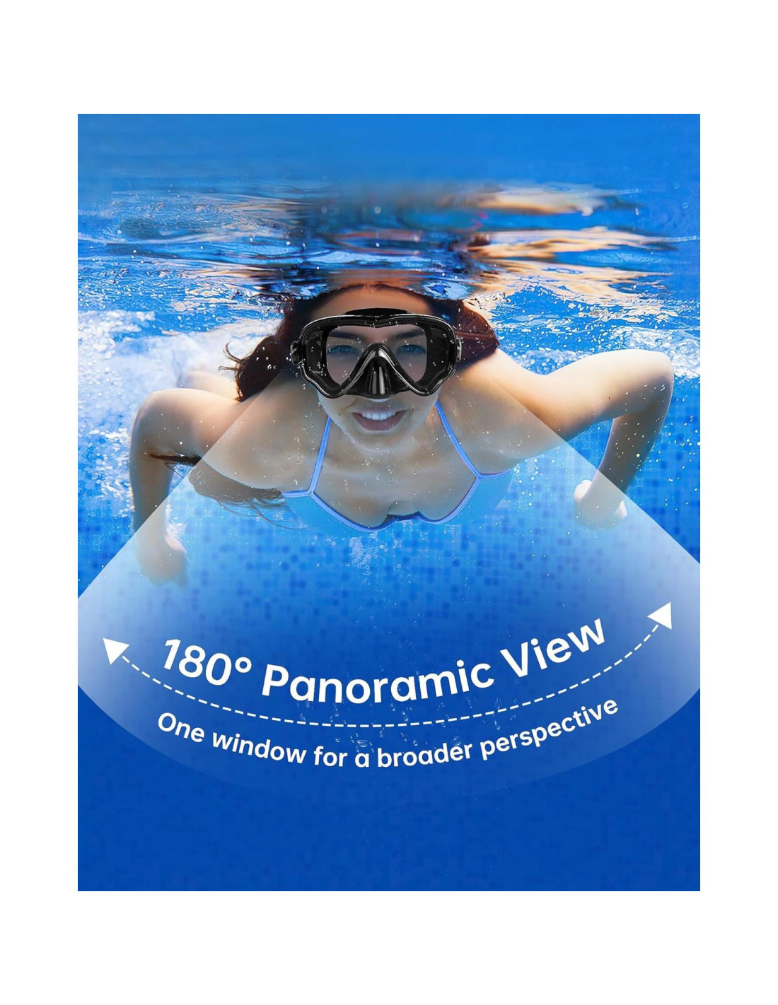 - Cubierta para la nariz ergonómica y suave: Con la cubierta de silicona para la nariz, nuestras máscaras de natación para adultos permiten una fácil equalización durante los buceos y previenen la respiración accidental por la nariz, ideal para principiantes y profesionales por igual. Su diseño espacioso acomoda puentes nasales altos, eliminando la incomodidad y asegurando un ajuste sellado para nadar, esnórquel o buceo