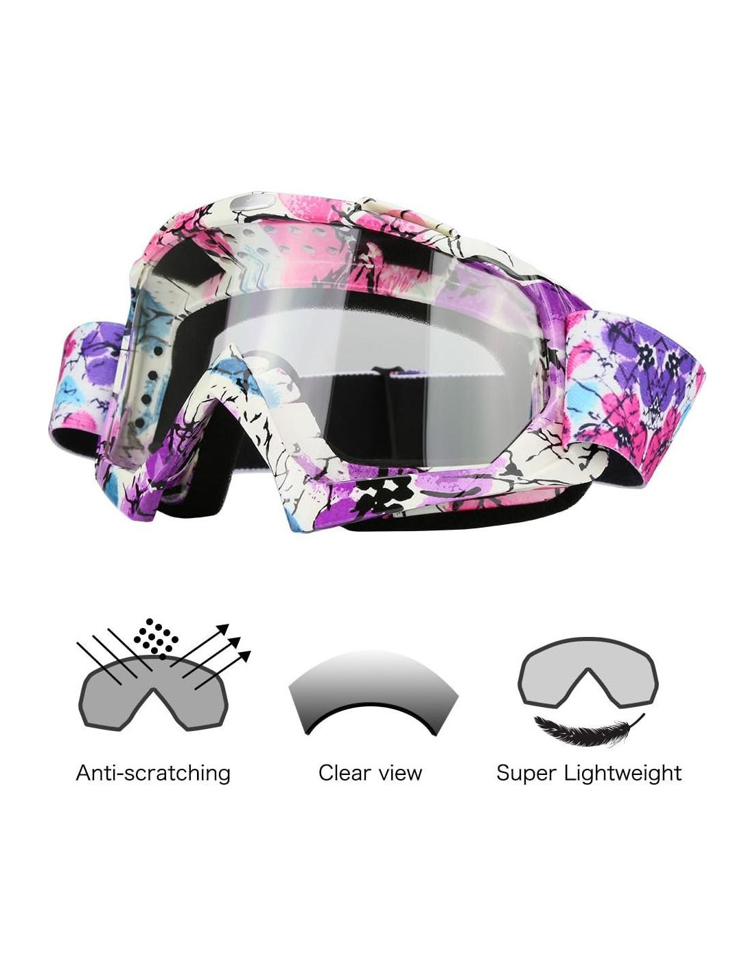 - Ligero y flexible: Las gafas claras para ATV son súper ligeras 3.52 oz (99,22 g) con marco flexible, se pueden guardar fácilmente y de manera conveniente en una bolsa de gafas sin importar a dónde vaya. Regalos ideales de Navidad para mujeres, hombres, jóvenes, adolescentes, niñas, niños.