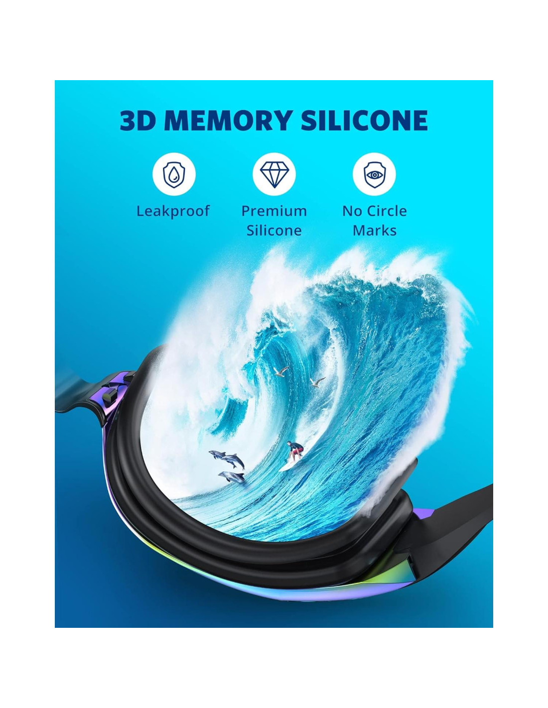 - Gran sellado y sin fugas - El diseño ergonómico de las gafas de natación con material de silicona de alta calidad asegura un ajuste cercano a diferentes formas de cara y nunca permite fugas. Además, el marco de silicona flexible y el soporte nasal mejorado proporcionan una comodidad extrema y nunca lastimarán tu nariz ni dejarán marcas en tu cara.