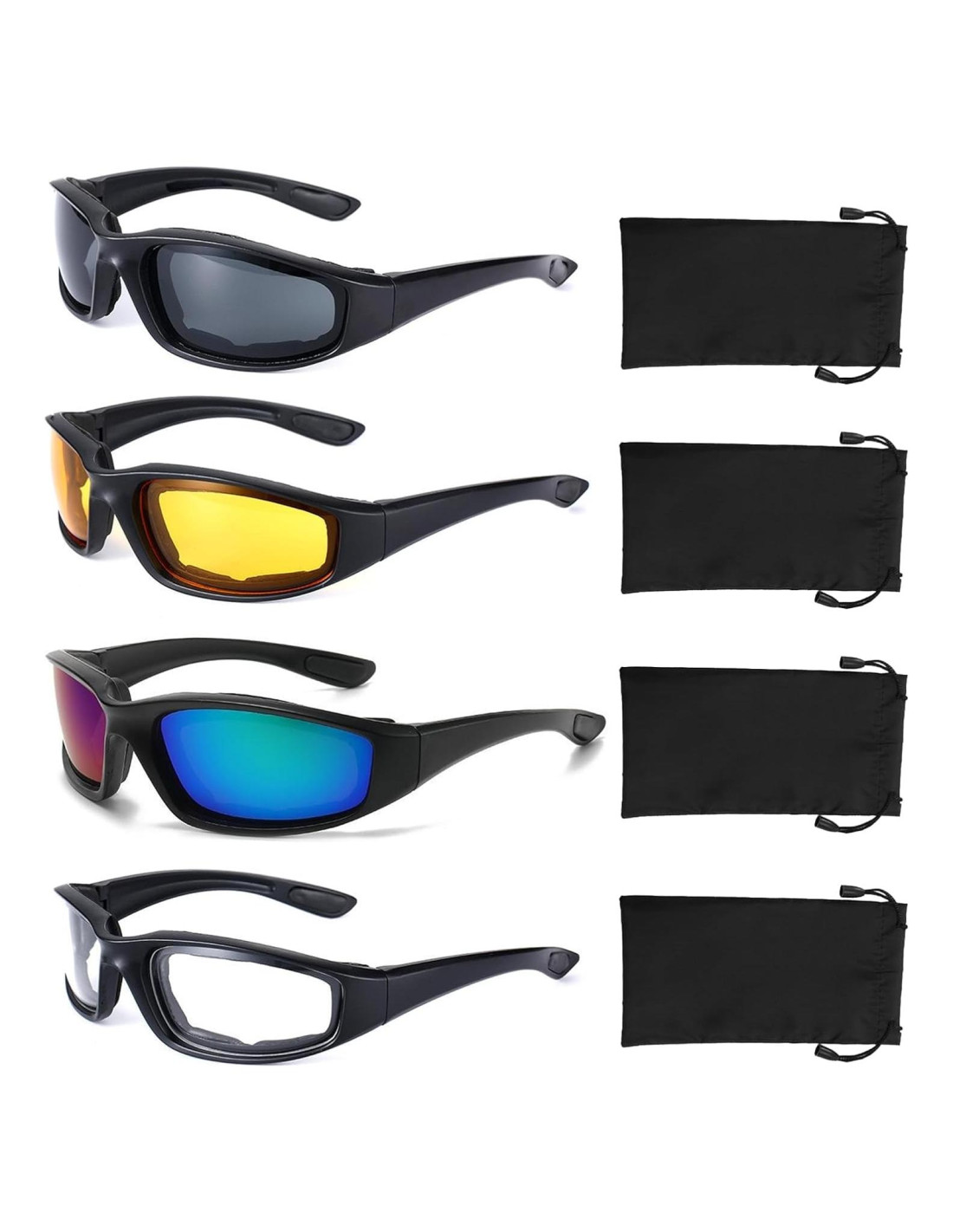 - CONJUNTO DE GAFAS DE MOTOCICLETA - Contiene YISUGOOC 4 pares de gafas con diferentes lentes de colores y 4 bolsas de almacenamiento para gafas. Los lentes amarillos son adecuados para su uso en entornos de baja visibilidad para mejorar el contraste y hacer que las escenas naturales sean más brillantes y claras. Los lentes grises y azules reducen la intensidad de la luz para deportes al aire libre. Los lentes transparentes pueden prevenir eficazmente el viento y proteger tus ojos de objetos externos.
