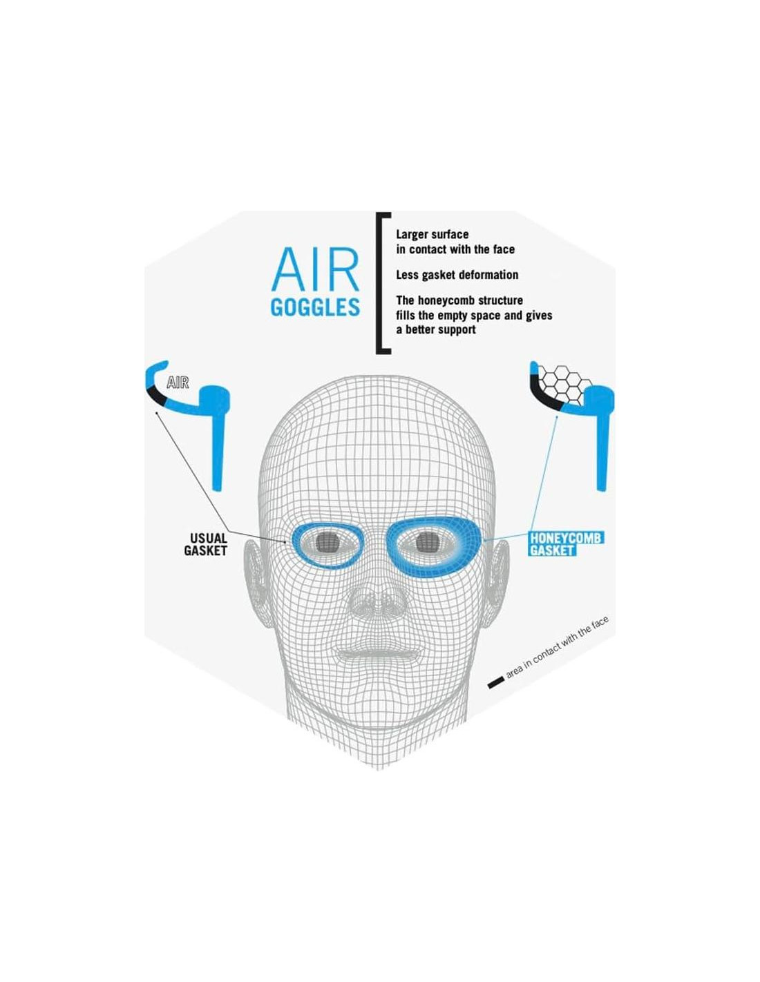 - Los innovadores Sellos de Aire tienen forma de panal para comprimir y adaptarse a la cara, proporcionando una sensación super ligera, mayor comodidad y estabilidad mejorada mientras nadas