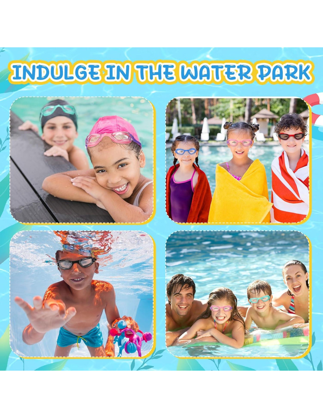 - Colores vibrantes para elegir: el paquete incluye 6 piezas de gafas de natación para niños en colores vibrantes y elegantes, como azul, rosa, verde fruta, negro, rosa púrpura, negro rojo, 6 pares de tapones para los oídos y 6 piezas de clips nasales; Puedes seleccionar el color según tu estado de ánimo y compartirlos con los miembros de tu familia