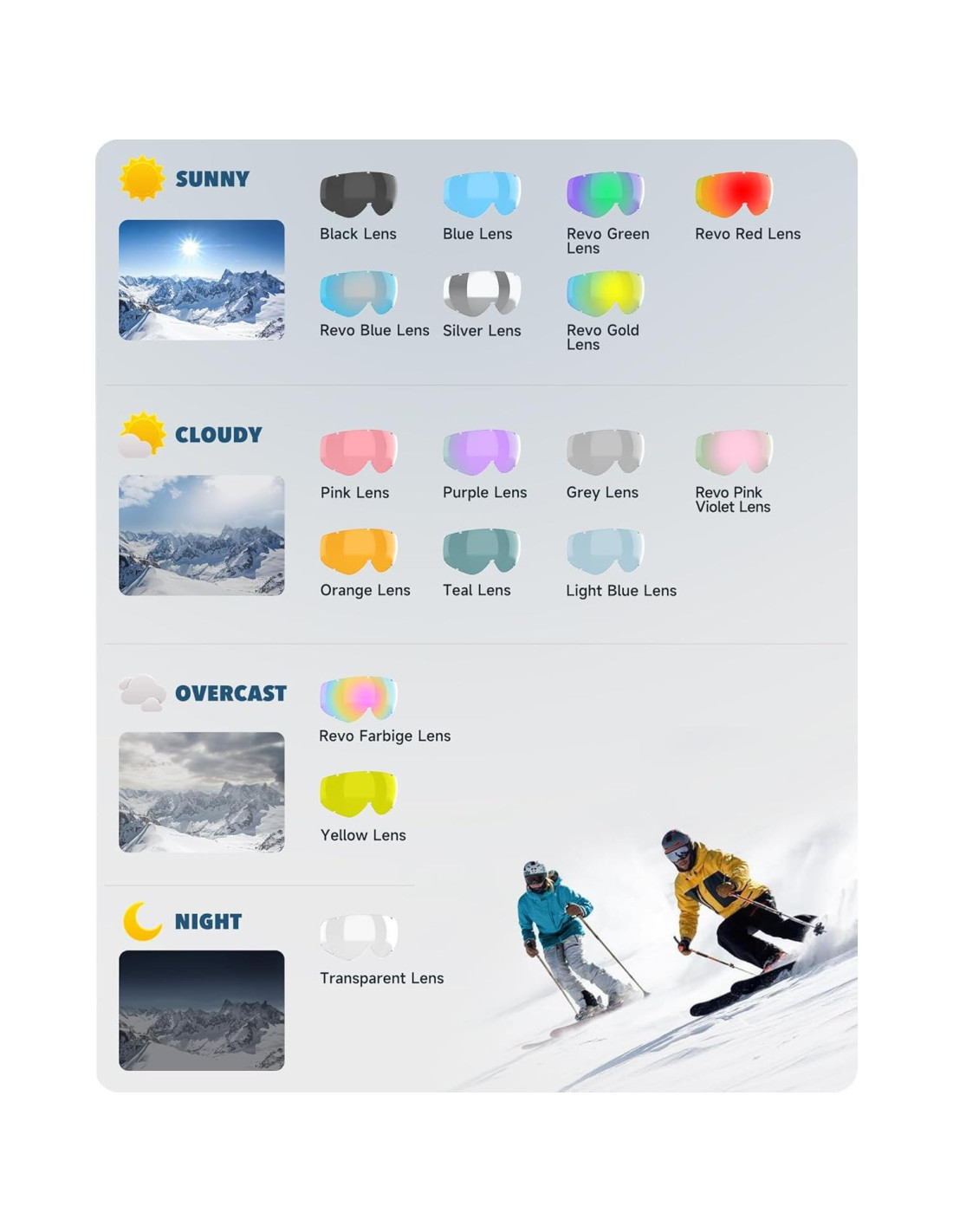 - 100% protección UV 100% La protección UV es una de las características más emocionantes de las gafas de nieve findway. La intensidad UV aumenta con la altitud, tus ojos estarán expuestos a UV con gafas de esquí comunes, las lentes de las gafas de snowboard findway están hechas de material de lente de policarbonato dual, todas las lentes tienen un recubrimiento anti-reflejo que protegerá tus ojos de los dañinos rayos UV que prevendrán la fatiga ocular así como daños a tus retinas