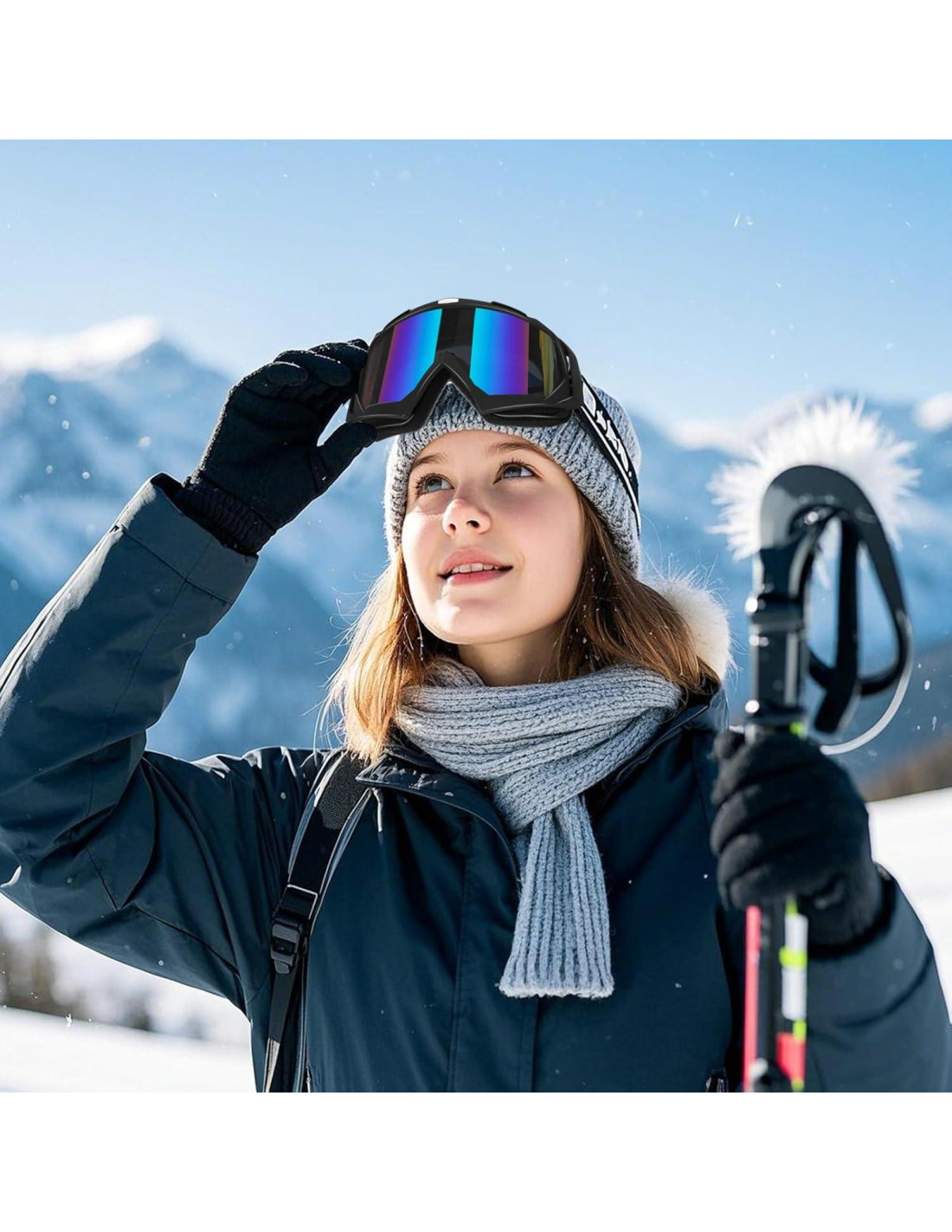 - Correa de gafas ajustable: La correa de gafas ancha, ajustable y de alta elasticidad se adapta a la mayoría de los cascos y tamaños de cabeza, asegurando que las gafas estén firmemente sujetas al casco.