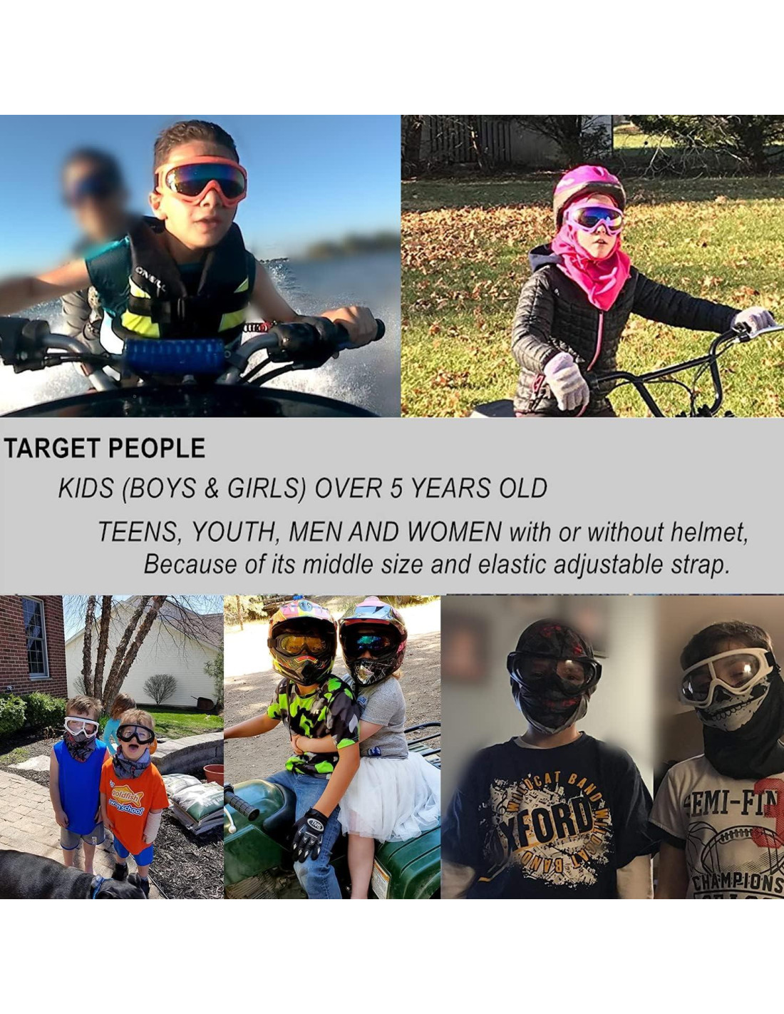 - CORREA DE SILICONA --- Correa de tamaño extra largo hecha de nylon duradero adecuada para amantes de los deportes con diferentes tamaños de cabeza. Se ajusta estrechamente a tu cara alrededor de tus ojos para protegerte del agua, polvo sucio, viento fuerte y caída de arena. Super resistencia, espuma gruesa protege mejor tus ojos.