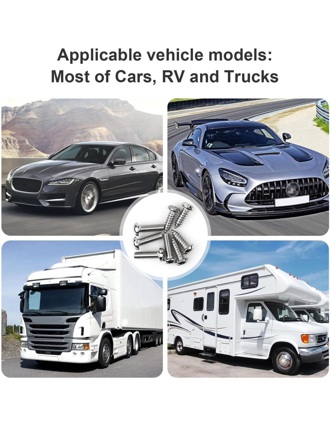 - MATERIAL PREMIUM: Los tornillos para placas de matrícula están hechos de acero inoxidable 304 de primera calidad, de alta resistencia, robustos y duraderos, resistentes a la corrosión, a la oxidación y a las inclemencias del tiempo
