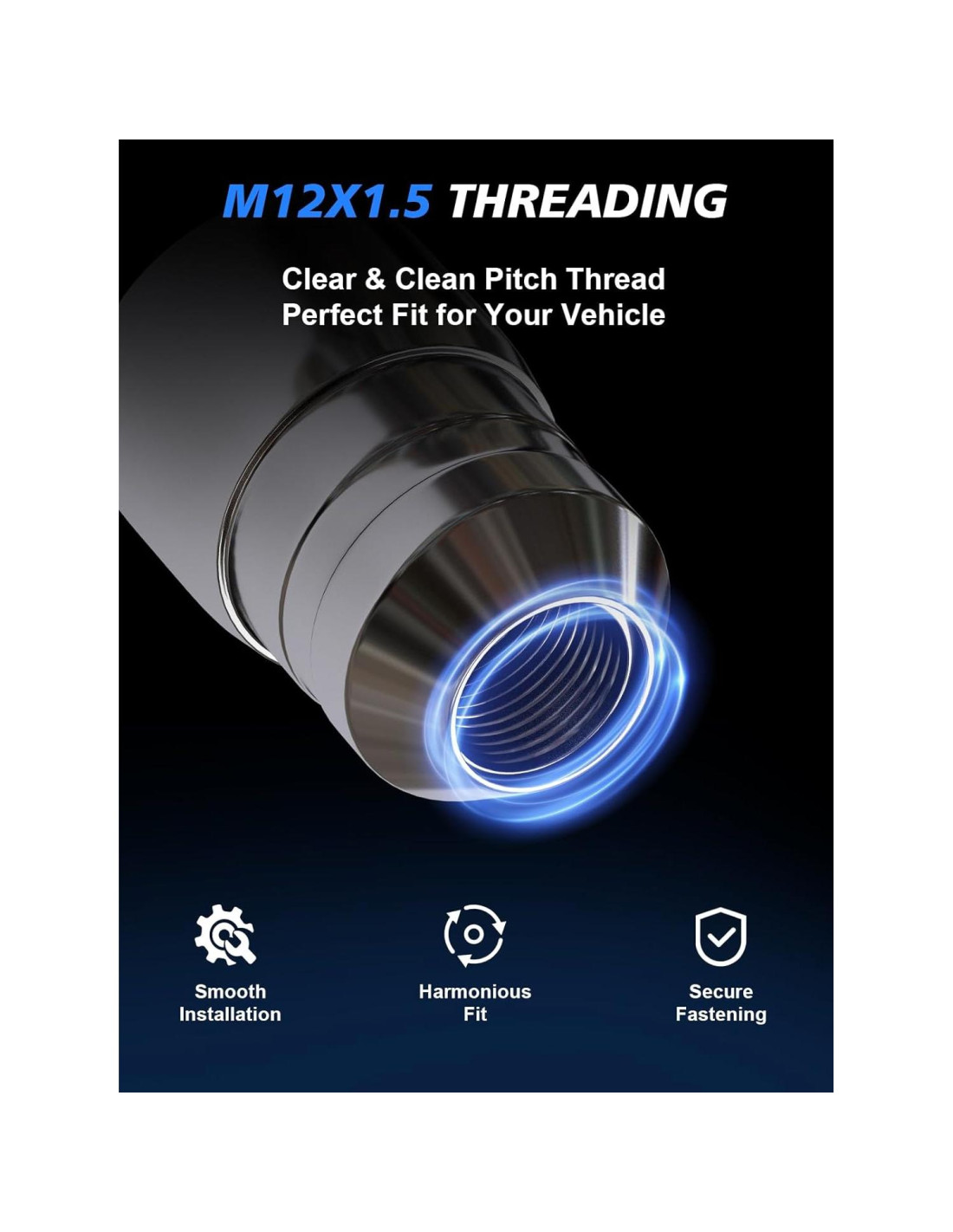 - Ajuste de Calidad OEM-Diseñado para tamaño de rosca M12x1.5, compatible con modelos de GM, Chevy, Cadillac, Buick y algunos modelos de Toyota. El diseño de asiento cónico coincide con los contornos de las ruedas de fábrica, evitando rayones o torque desigual.