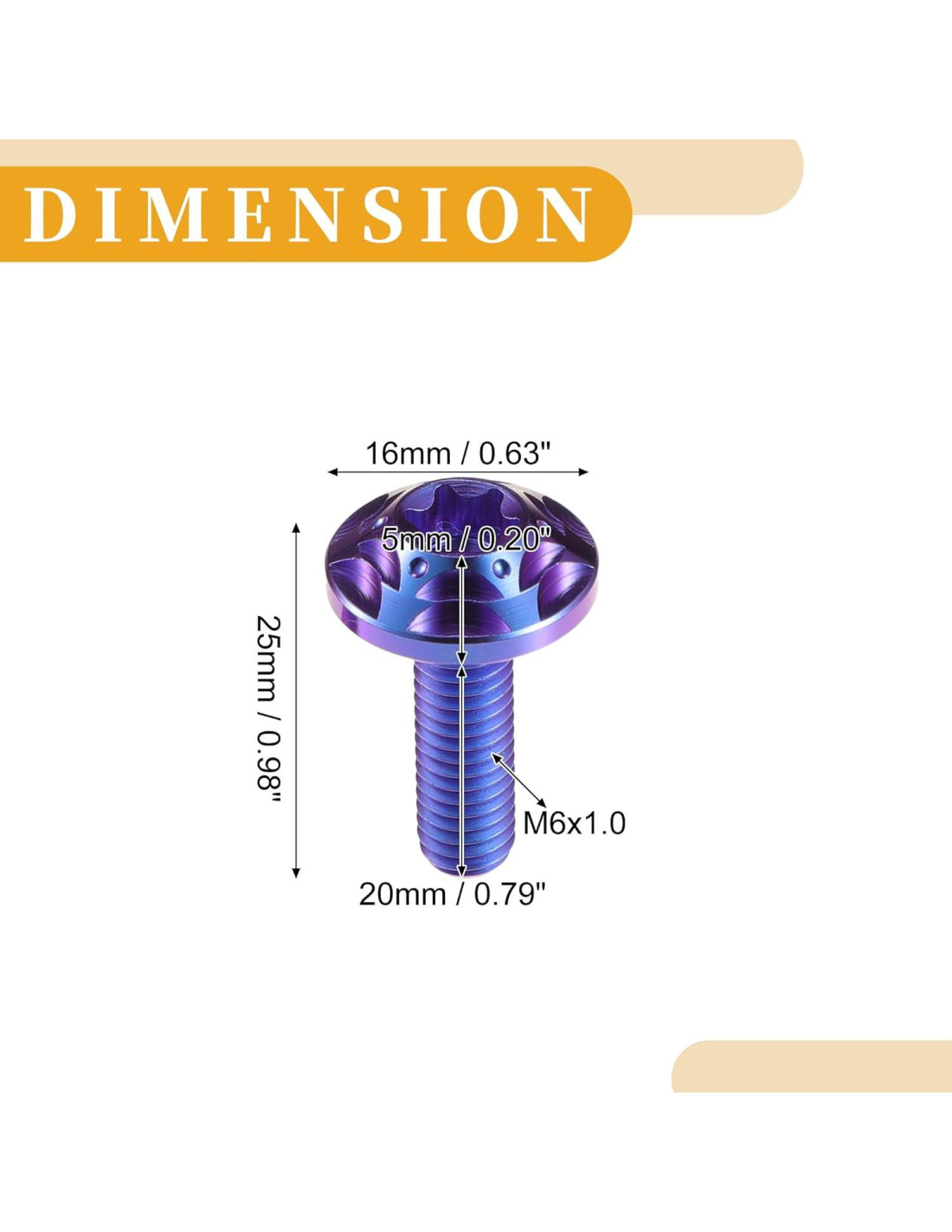 Este Tornillo para Placa de Licencia se puede usar para sujetar placas de licencia de vehículos. Hecho de material duradero, que es más resistente al desgaste, duradero y no fácil de romper. Fácil de instalar, reemplazo directo de su Tornillo de Placa de Licencia roto. Color: Púrpura Profundo, Tono Plateado. Material: Aleación de Titanio. Tamaño: 25x16mm / 0.98"x0.63"(H*D). Tamaño de Rosca: M6x1.0. Diámetro de Rosca: 6mm / 1/4". Longitud de Rosca: 20mm / 0.79". Grosor de Cabeza de Tornillo: 5mm / 0.20". para la mayoría de los vehículos. Debido a la medición manual, la desviación de tamaño es de aproximadamente 0-1 mm. Por favor, verifique la descripción del artículo para asegurarse de que sea adecuado para su coche antes de ordenar. 4 Pcs - Tornillo de Placa de Licencia. 4 Pcs - Arandelas. 1 Pc - Llave en L.