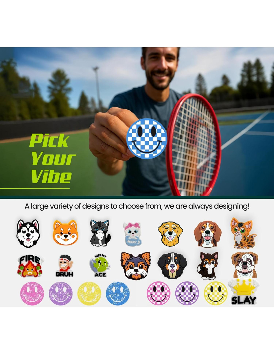 - Comparte el Amor: Cada paquete de amortiguadores de tenis incluye dos amortiguadores - guarda uno como tu amuleto de la suerte y regala el otro a un amigo tenista. Perfecto para cualquiera que disfrute de un toque de personalidad en la cancha.