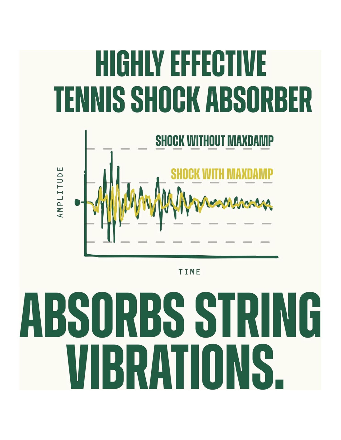 - Amortiguación Efectiva: El modelo de amortiguador de choque Maxdamp es extremadamente efectivo al ajustarse de manera segura alrededor de seis cuerdas de raqueta. Como dispositivo antivibración, esta característica es esencial para este tipo de accesorios de raqueta de tenis. Es imperativo que los amortiguadores de raqueta de tenis tengan el máximo contacto con las cuerdas, y el diseño Maxdamp hace precisamente eso.