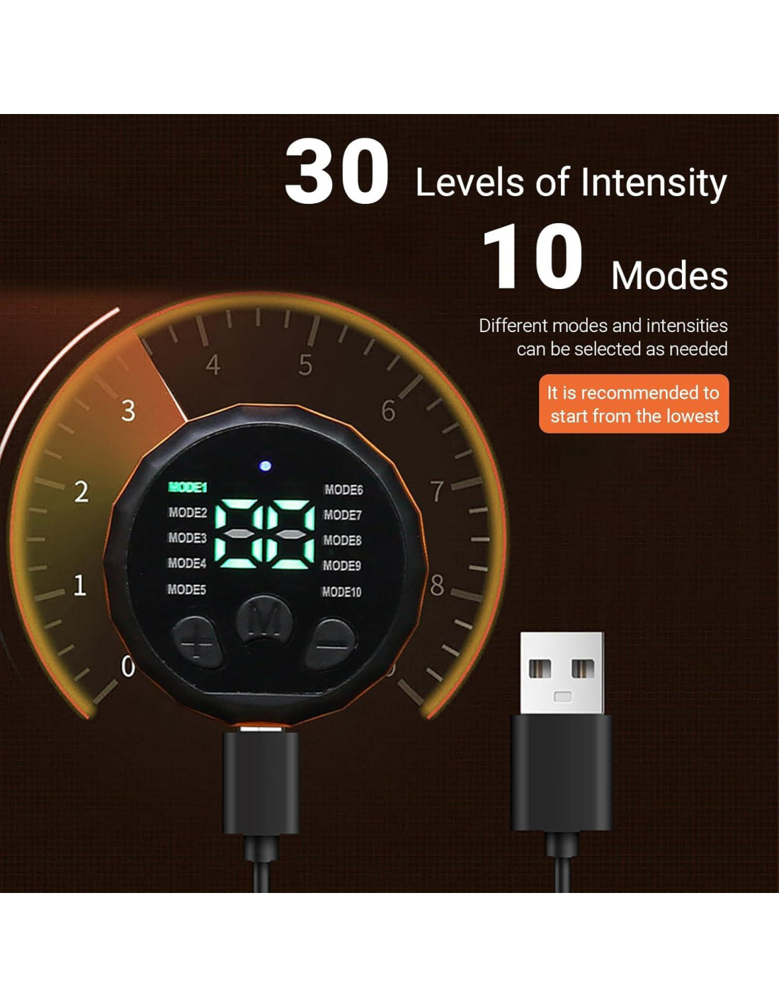 - Fácil de Usar: Los controles simples te permiten cambiar fácilmente entre modos y ajustar el nivel de intensidad para adaptarse a tus necesidades y nivel de condición física. (NOTA: Se recomienda aumentar desde el nivel más bajo)