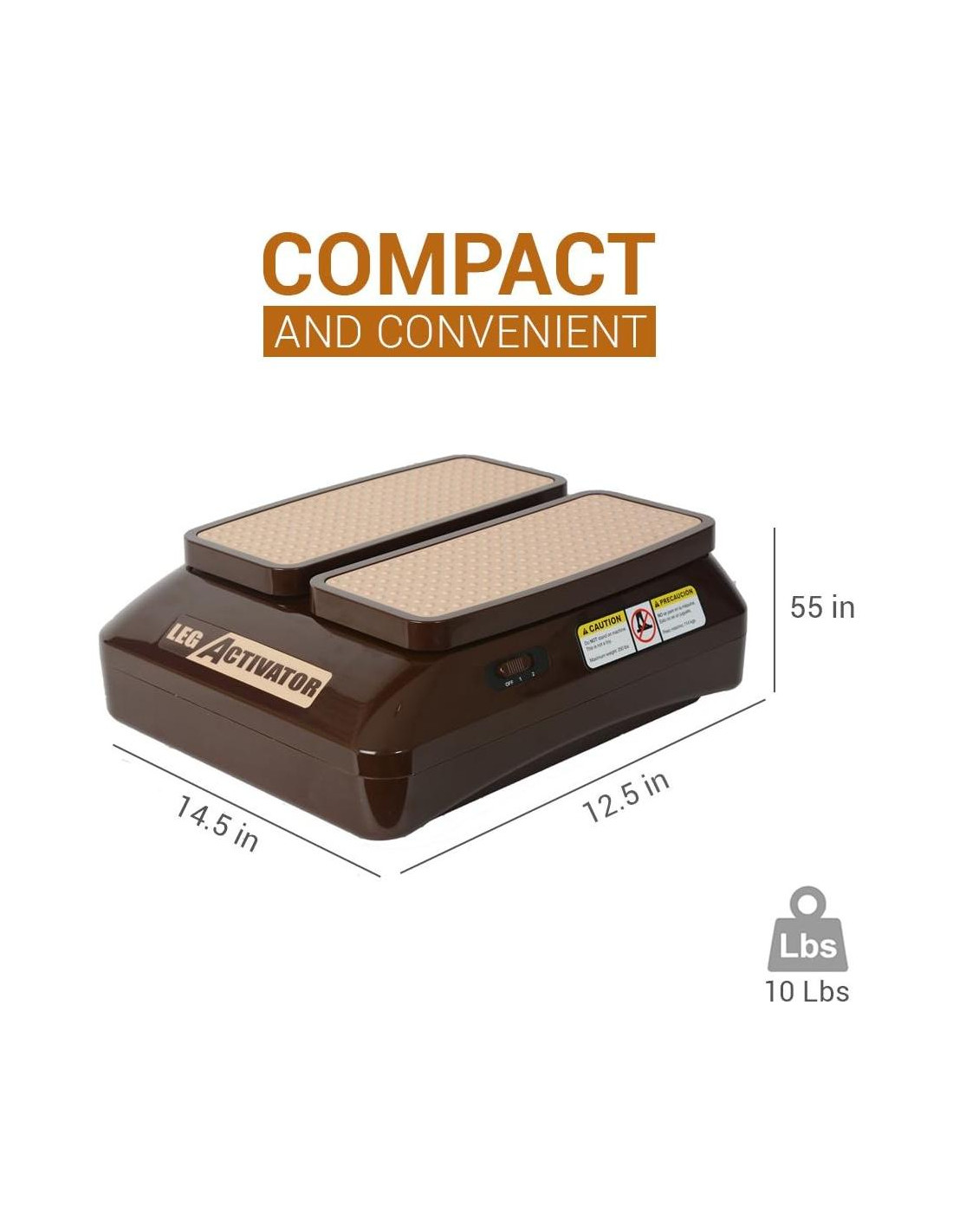 LEGACTIVATOR es un ejercitador de piernas y máquina de fisioterapia que trae todos los beneficios de un gimnasio pasivo mientras estás sentado. Este ejercitador fue hecho con la ERGO-TERAPIA en mente, que consiste en movimientos continuos y precisos sin vibraciones que ACTIVAN la movilidad de tus piernas y MEJORAN tu circulación sanguínea. LegActivator te ayudará a prevenir esos terribles calambres en las piernas o ese molesto dolor de espalda que todos sufrimos con demasiada frecuencia, también te ayudará a disminuir problemas vasculares e inflamación en las piernas mientras te ayuda a combatir la celulitis y las varices. LegActivator se puede usar en cualquier situación, ya sea sentado en casa viendo televisión o desde tu escritorio en la oficina debido a su tamaño compacto y conveniente, así que puedes usarlo y guardarlo donde quieras. Esta MÁQUINA DE FISIOTERAPIA es tan fácil de usar que puedes comenzar a usarla INMEDIATAMENTE. Solo tienes que seguir estos SIMPLES pasos, CONÉCTALO (en cualquier lugar con salida de 110w) luego COLOCA TUS PIES y AJUSTA TU VELOCIDAD. Ahí lo tienes, ahora puedes obtener todos los beneficios del gimnasio pasivo donde quiera que vayas. ¿QUÉ ESTÁS ESPERANDO? MEJORA TU ESTILO DE VIDA HOY!