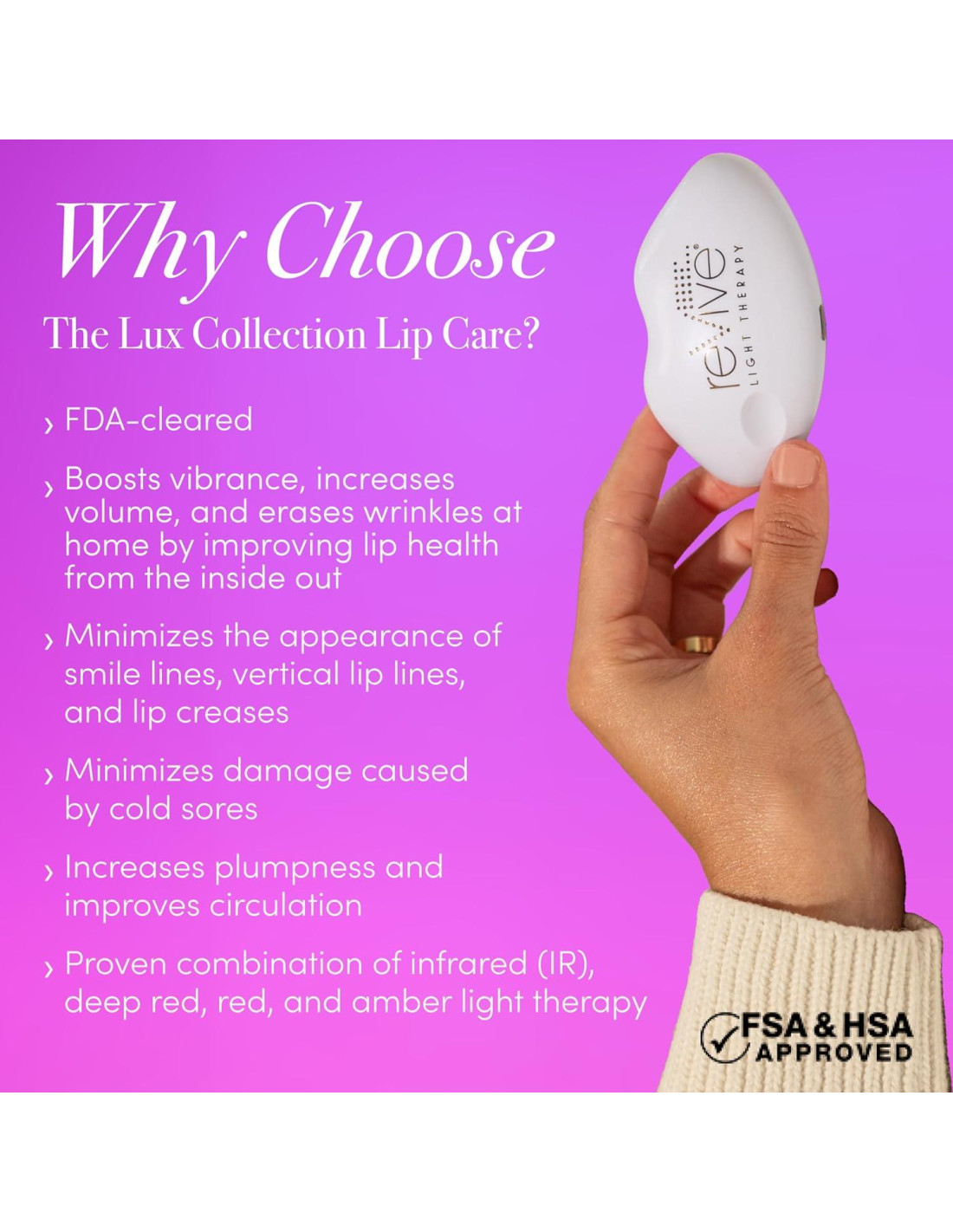 - EL CUIDADO DE LABIOS INCLUYE - Dispositivo de Cuidado de Labios reVive Light Therapy Lux Collection, bandeja de boca removible, garantía de 1 año, bolsa de almacenamiento, adaptador de corriente, cable de carga USB y Guía del Usuario.