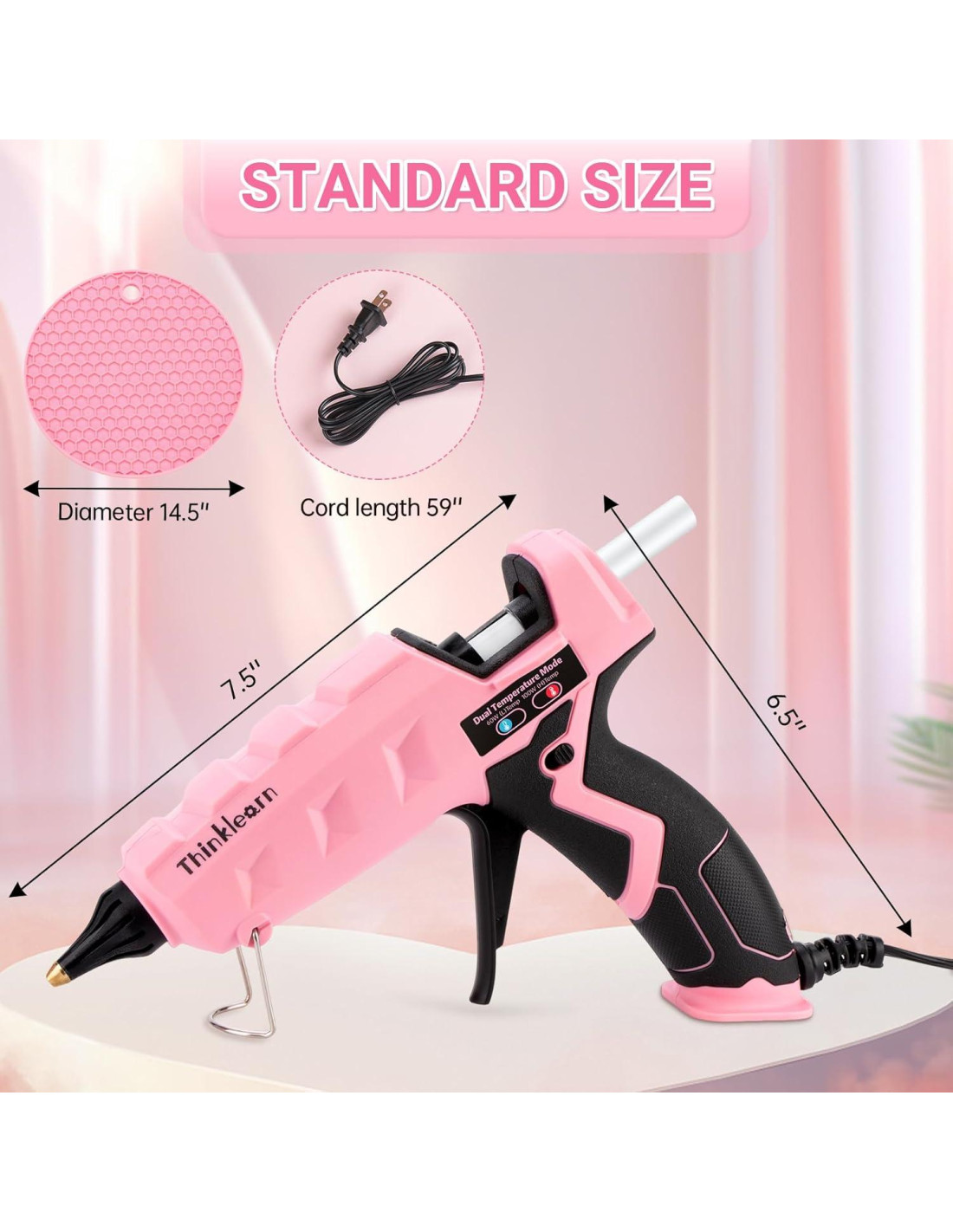- Doble Temperatura --- La pistola de pegamento ThinkLearn ofrece configuraciones de temperatura dual para satisfacer tus diferentes necesidades de proyecto. 60W para proyectos de manualidades y materiales frágiles como joyas y telas, la configuración de 100W es ideal para diversas tareas de reparación en madera, metal y cerámica, etc.