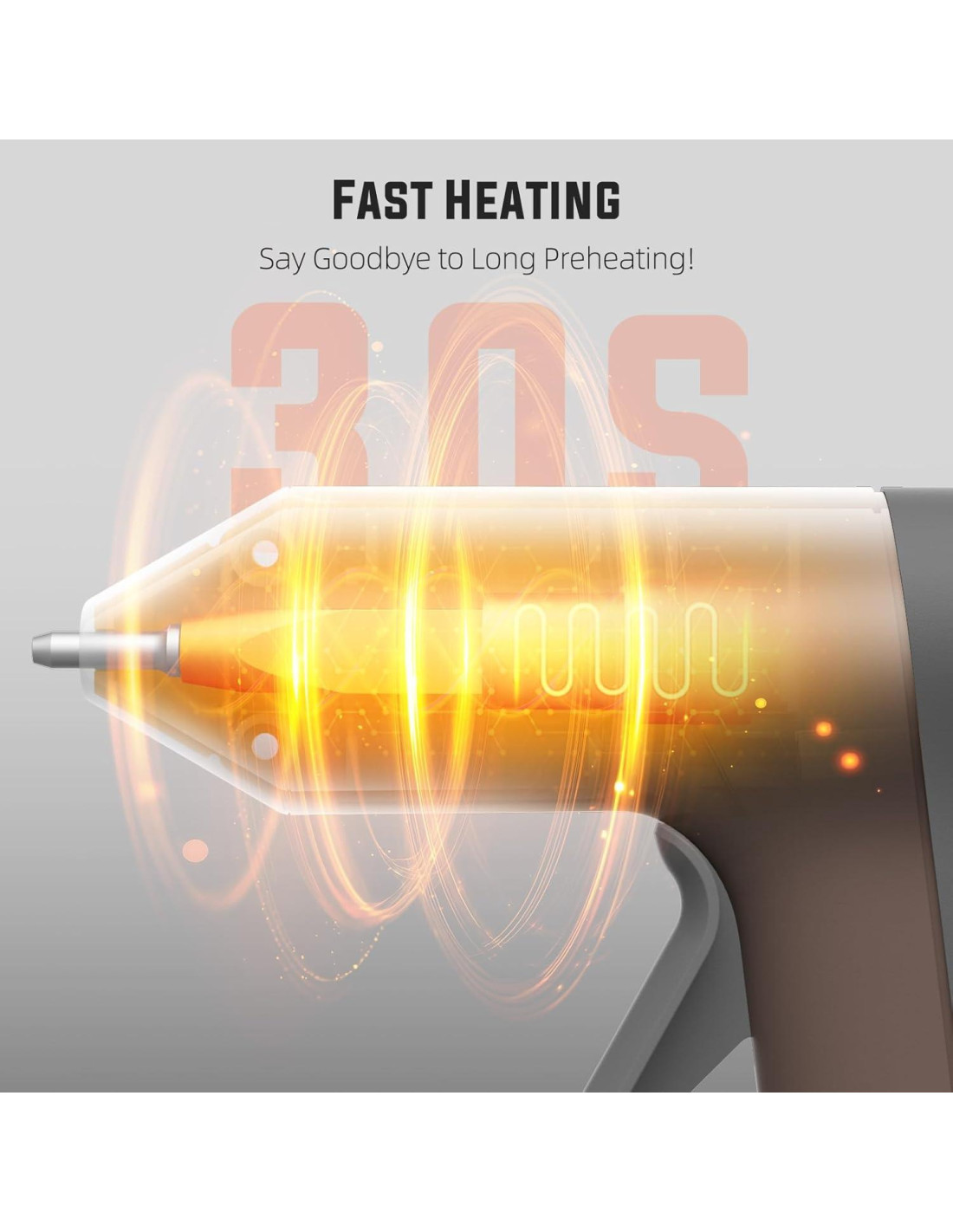 - Apagado Automático Inteligente: Equipado con un chip de control inteligente, la pistola de pegamento inalámbrica se apaga automáticamente después de 5 minutos de inactividad. Reduce el desperdicio de energía en espera, ahorra electricidad y extiende la vida útil de los componentes: probado para mejorar la durabilidad en un 20%. Crea de forma segura y con tranquilidad.