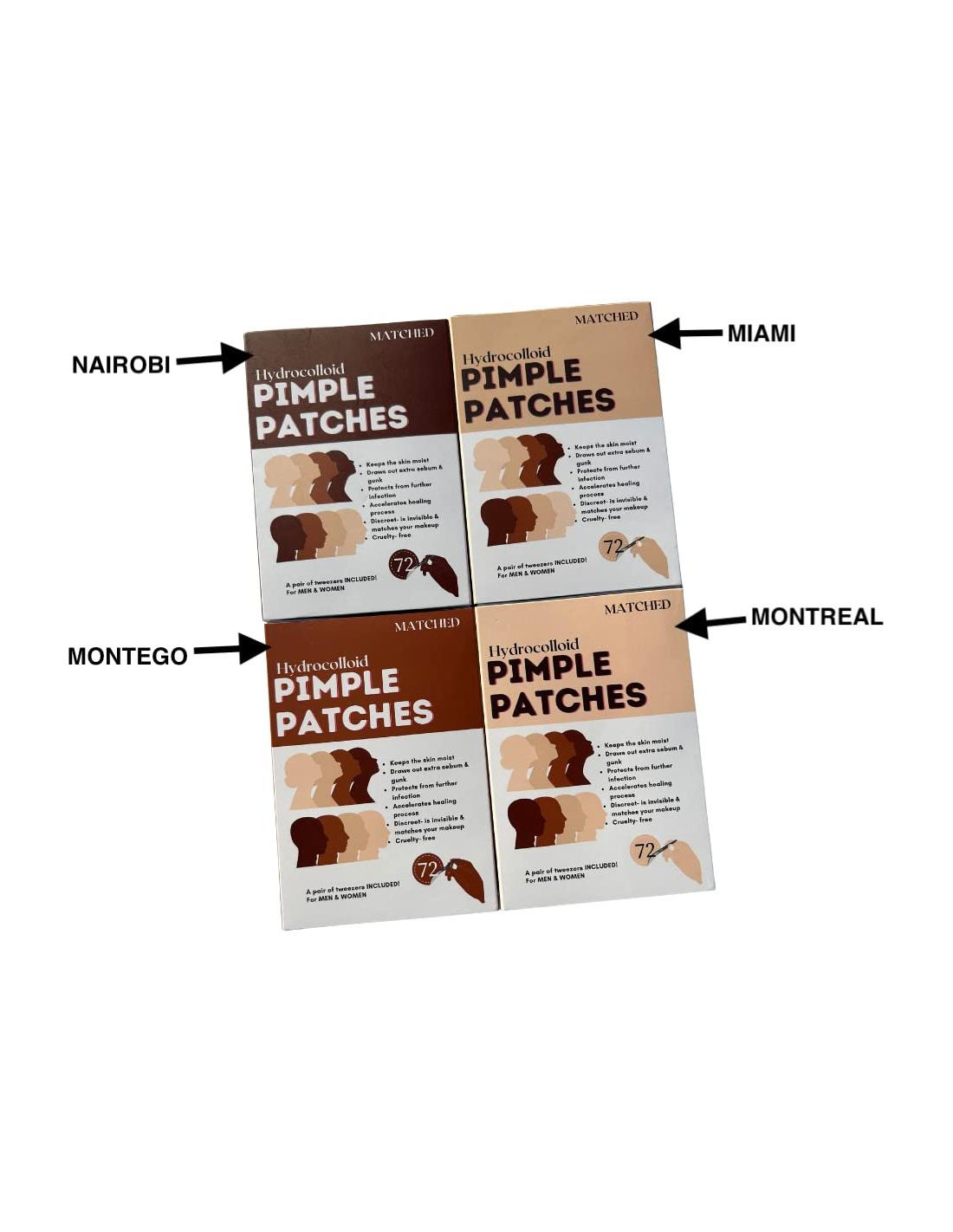 Conoce nuestros parches hidrocoloides para granitos MATCHED en el tono MIAMI! Son discretos, delgados como papel y mate, por lo que se pueden usar durante el día en el trabajo; no tienes que ocultarlos bajo una mascarilla. Selecciona los puntos para el acné que coincidan con tu tono de piel y/o según el color de la base que uses (se proporciona una tabla de parches y base como referencia). El parche MATCHED se puede usar con o sin maquillaje y es adecuado tanto para hombres como para mujeres. Extrae impurezas y sebo adicional de tu granito y es el más adecuado para tus necesidades de tratamiento del acné. Cada sticker para granitos actúa como una cubierta protectora y previene el contacto y la manipulación, protegiendo así de infecciones adicionales. Los Parches para Acné Hidrocoloides MATCHED son eliminadores de puntos blancos! Nuestros parches son 72 en un paquete; vienen en diferentes tamaños: 24 stickers grandes para granitos (1.27 cm), 24 stickers medianos para granitos (1.02 cm), 24 stickers pequeños para granitos (0.64 cm).