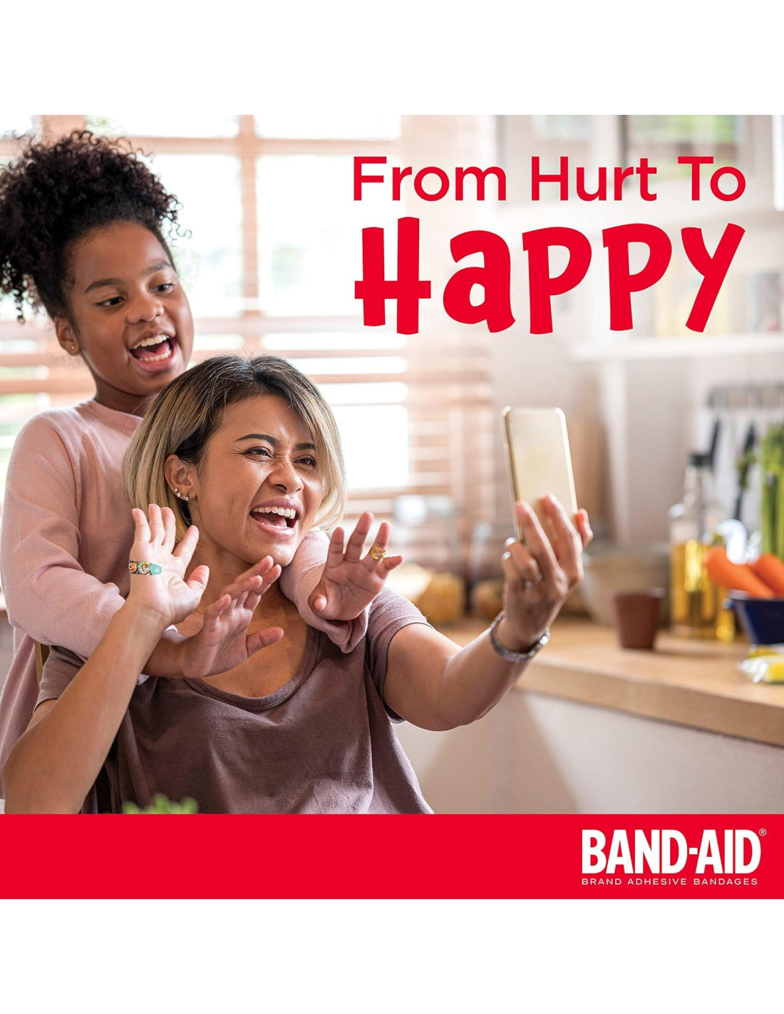 - Los vendajes adhesivos estériles de la marca Band-Aid vienen en una caja con una variedad de tamaños y divertidos diseños de personajes, ideales para heridas pequeñas y adecuados para niños pequeños