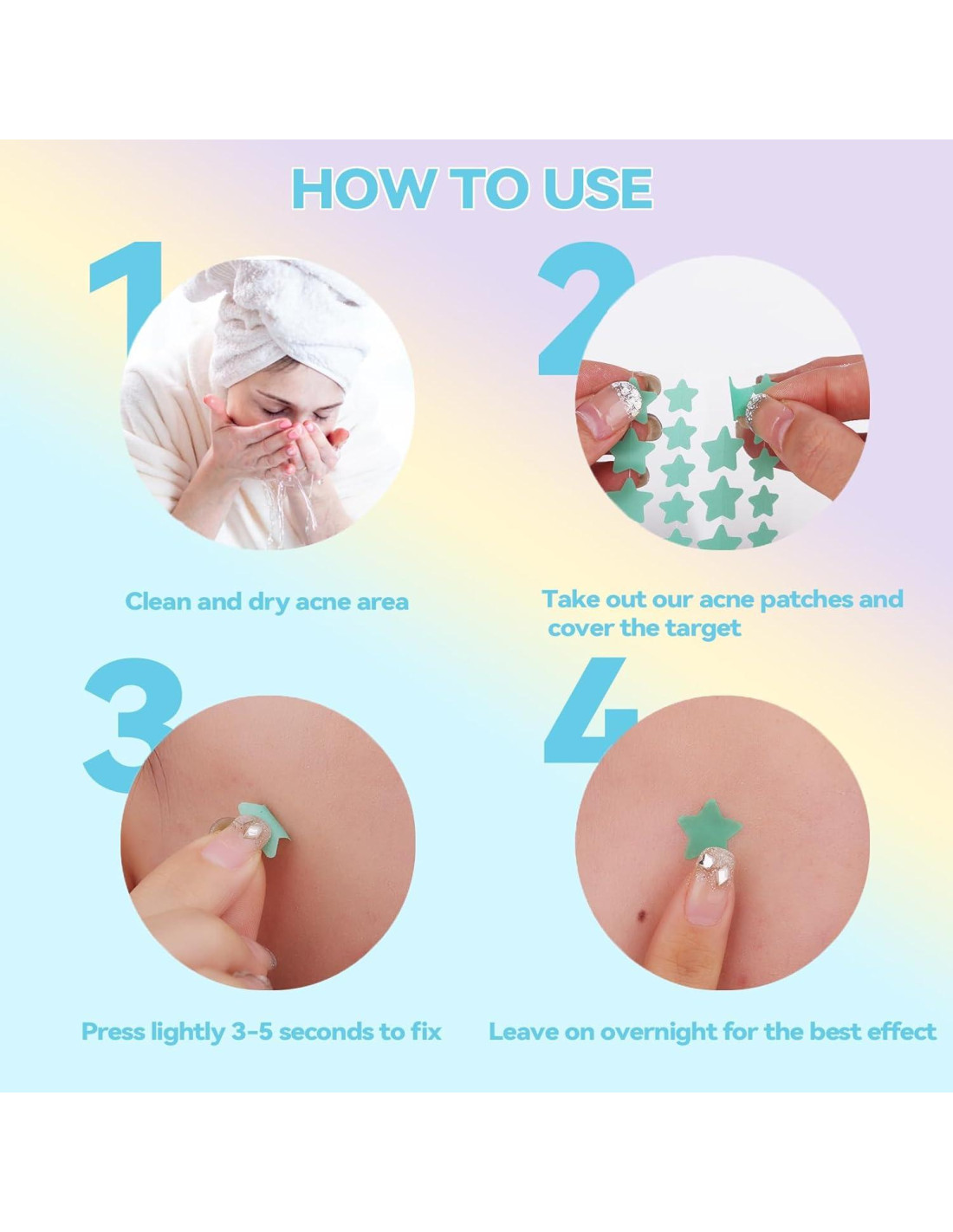 - [Apto para Todo Tipo de Piel y Ocasiones] : Estos parches para granos son no tóxicos y no secantes. El diseño de 5 colores y forma de estrella hace que nuestro producto sea adecuado para uso de maquillaje y se adapte a muchas ocasiones como dormir, fiestas de disfraces, bodas, fiestas de festivales, compras, viajes, trabajo, etc. Decora con estos lindos y efectivos parches para granos para hacerte más adorable.