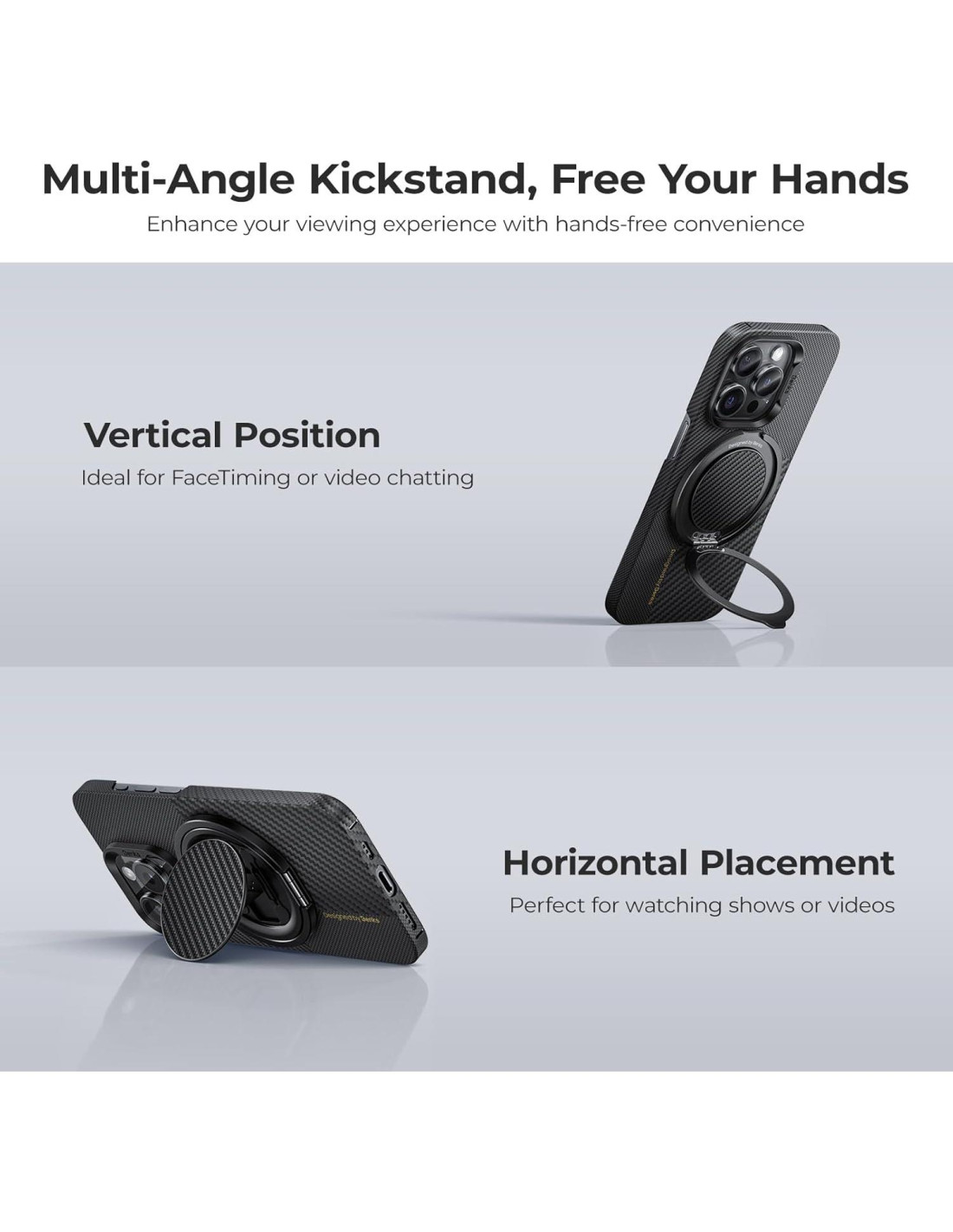 Gira el anillo magnético para colocar tu teléfono en modo horizontal o vertical para una experiencia manos libres. Úsalo como un agarre para teléfono, dándote un agarre seguro para un manejo confiado del teléfono. Ultra delgado y compacto, este soporte se pliega al tamaño de un bolsillo para un fácil transporte con tu teléfono a cualquier lugar. Retira el soporte de agarre en cualquier momento para una carga inalámbrica instantánea de tu teléfono. Este soporte de anillo protege la cámara de tu teléfono de rasguños y ofrece una colocación estable en la mesa.