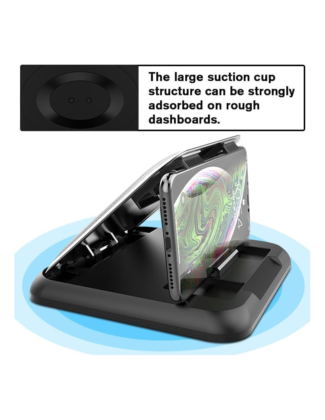 - FIJACIÓN ESTABLE Y DISEÑO MULTI-ÁNGULO La base de este soporte para teléfono móvil está hecha de material polimérico firmemente pegado a la plataforma, y no se moverá, deslizará ni caerá al conducir en condiciones de carretera accidentadas. El teléfono móvil se coloca horizontalmente con un diseño de muesca, de modo que el teléfono móvil se puede ajustar hacia arriba y hacia abajo verticalmente en múltiples ángulos.