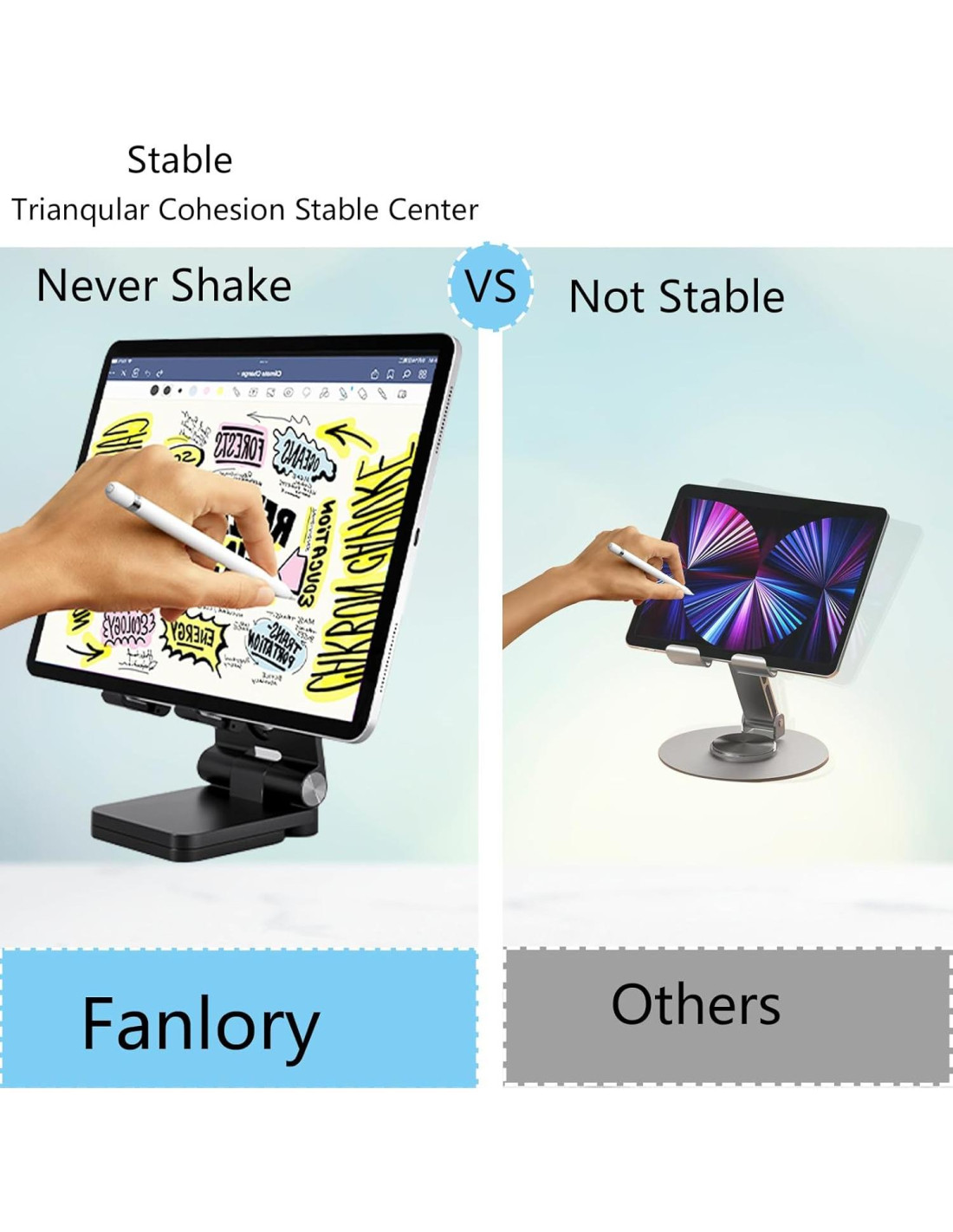 Soporte para Teléfono Móvil Fanlory. Diseñado para una integración perfecta en su espacio de trabajo, este soporte ofrece una solución elegante y funcional para su dispositivo móvil. Ideal para hacer ejercicio, ver videos y llamadas por facetime. Altura de ángulo ajustable, completamente plegable, ideal para su escritorio. El soporte para teléfono móvil y tableta funciona con todos los smartphones de 4.7"-17" (12-43 cm) y la mayoría de las tabletas con fundas. Trabaje cómodamente en cualquier momento y lugar, y manténgase saludable y cómodo en cada lugar.