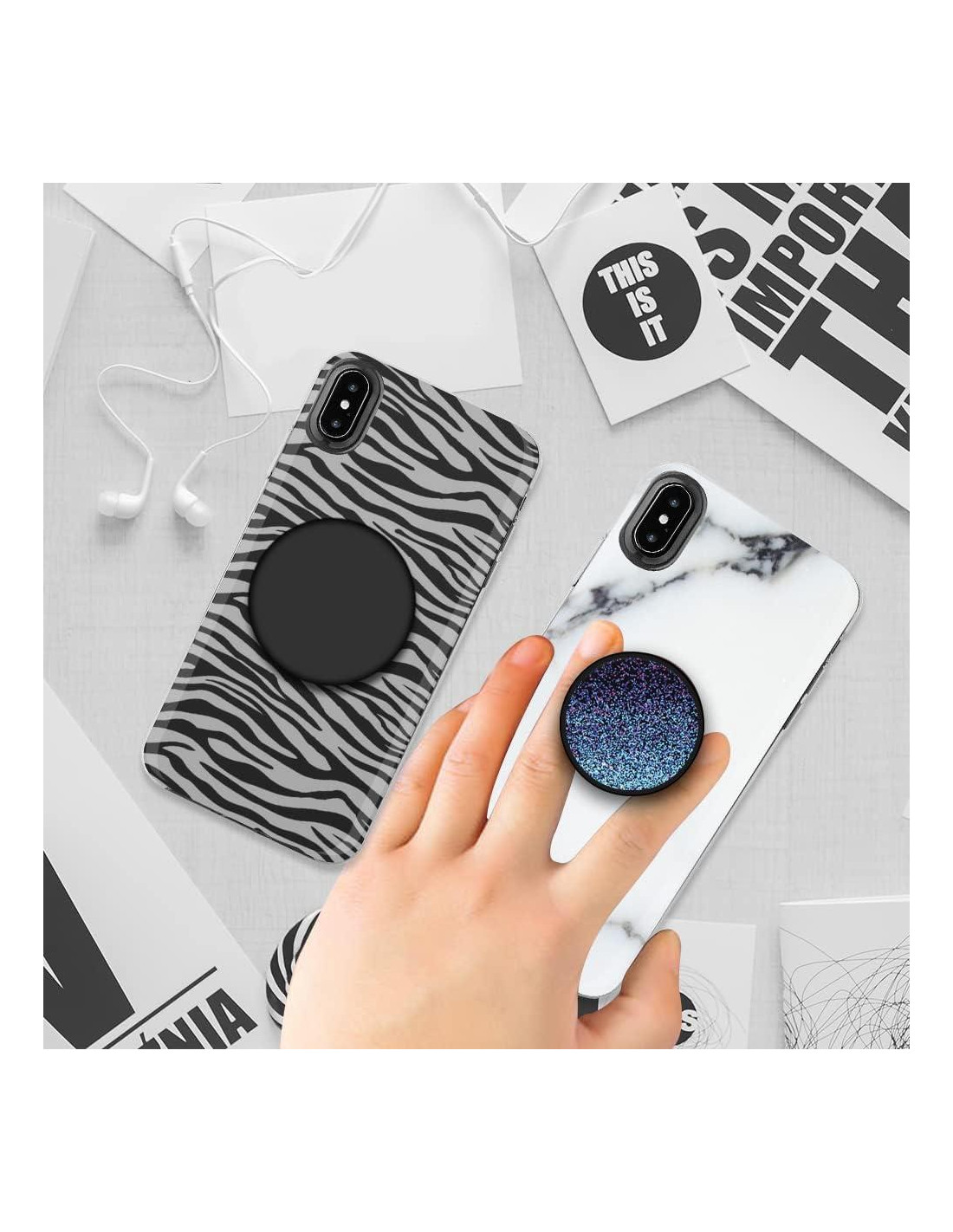 - La superficie del Agarre para Teléfono Plegable está hecha de pintura UV de alta definición con patrones hermosos y atractivos. El Soporte Universal para Teléfono mantiene tus auriculares organizados y siempre al alcance