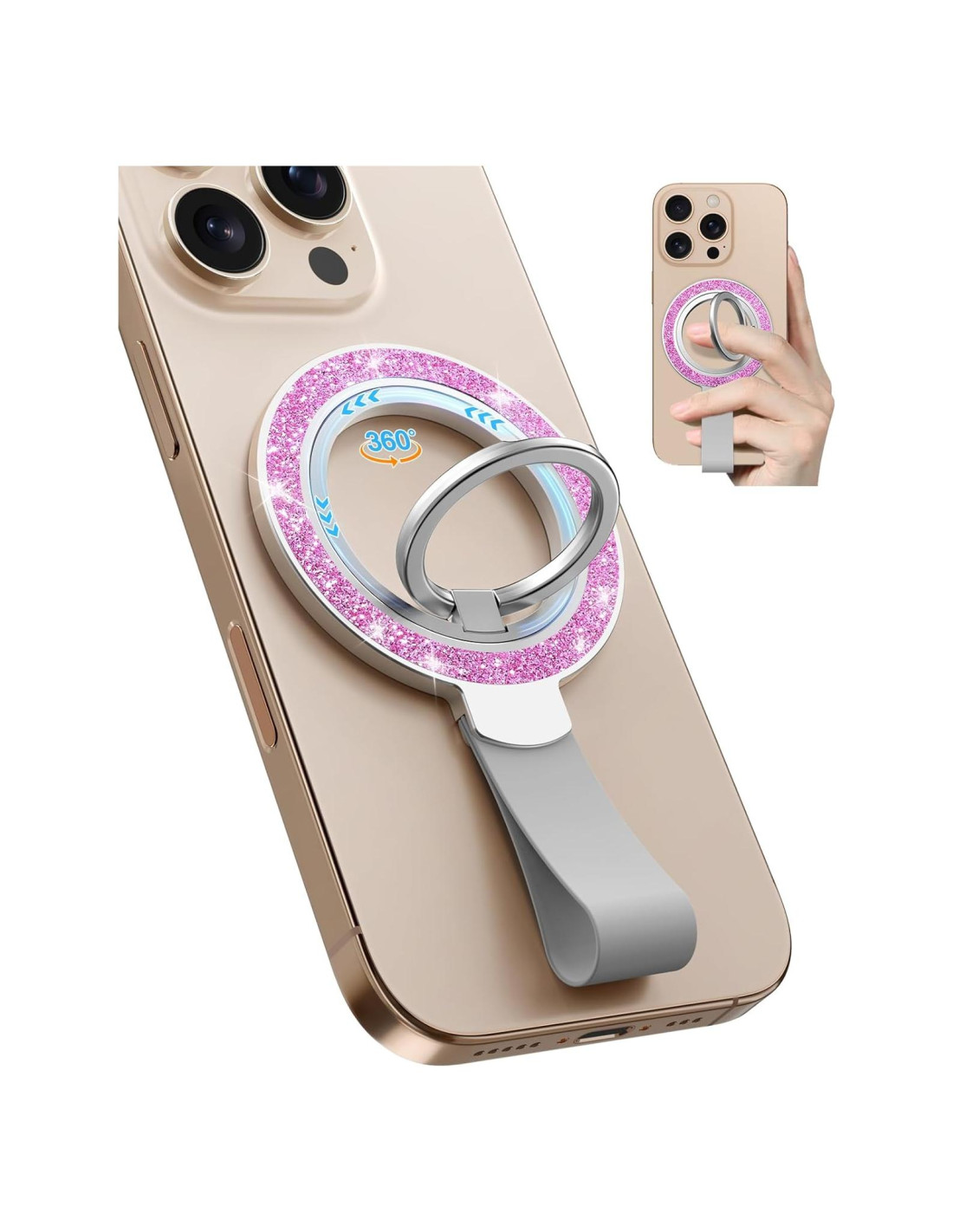 - Acabado Elegante con Brillo: Presenta un diseño brillante que añade un toque de sofisticación y estilo a tu agarre de accesorios para teléfono