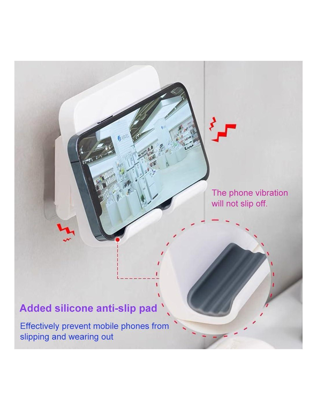 - Soporte de teléfono de pared autoadhesivo mejorado, el soporte de teléfono móvil de pared mejoró la pegatina autoadhesiva, se puede quitar y fijar firmemente en la pared, el paquete incluye 3 pegatinas.