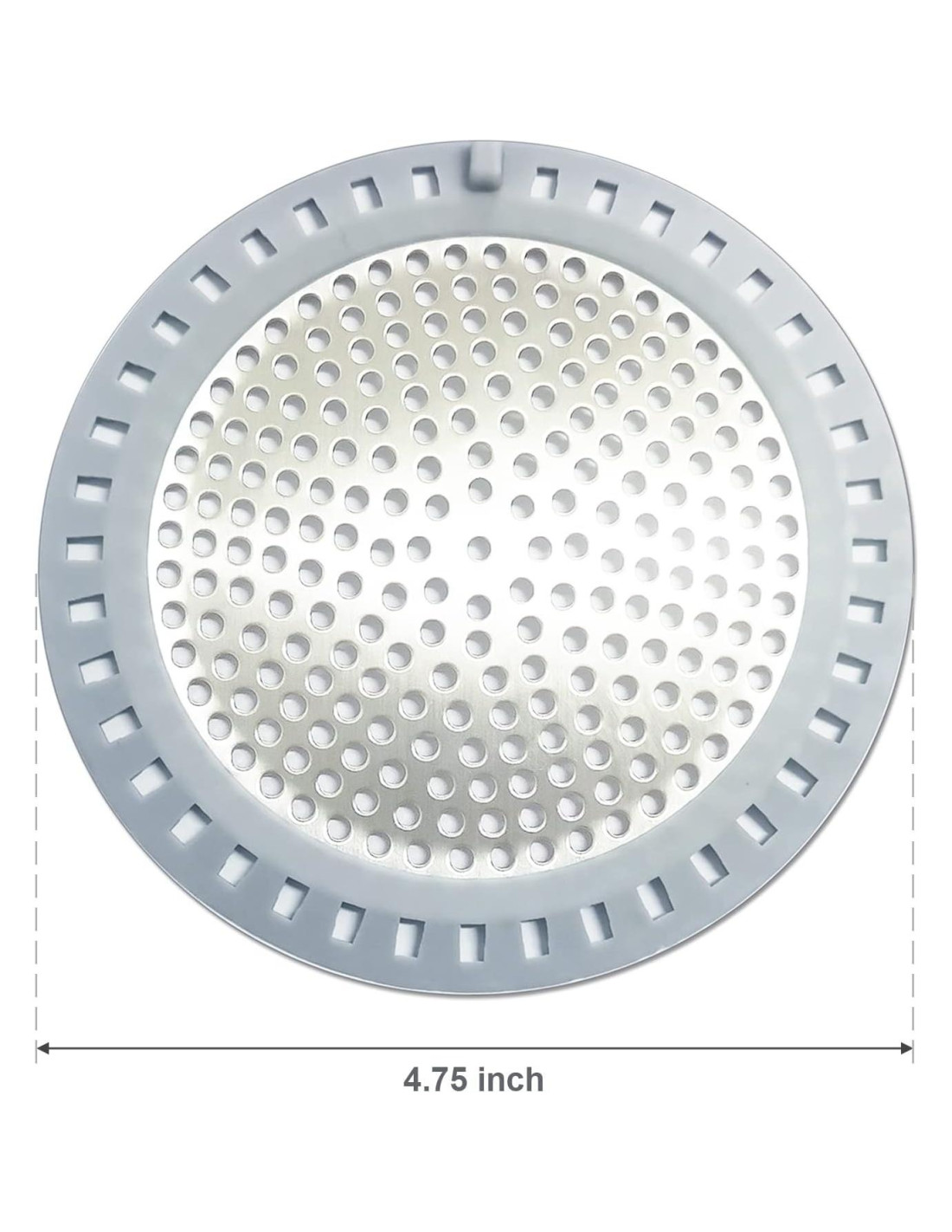 - [TAMAÑO] 4.75 x 4.75 pulgadas (12,07 x 12,07 cm), poro de drenaje de 0.08 pulgadas (0,20 cm), con borde ancho para recoger cabello y desechos. Apto para la mayoría de los desagües de duchas en EE. UU., desagües de bañeras, desagües de pisos de baño, desagües de lavandería.